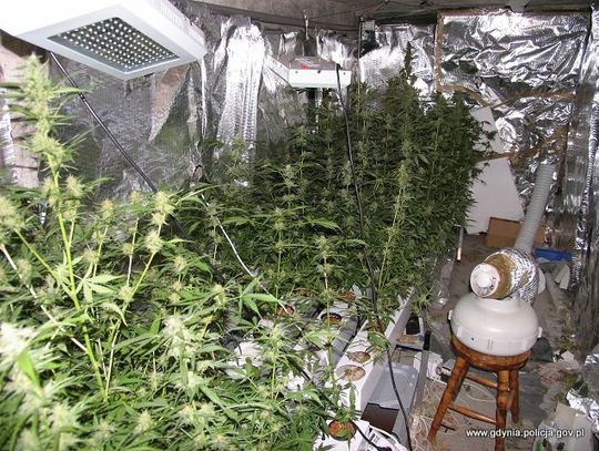 GDYNIA. Hodowla konopi indyjskich mieściła się w piwnicy jednego z budynków w pobliżu centrum Gdyni. Policjanci zabezpieczyli blisko 100 krzewów wysokości do 1 m. W mieszkaniu ujawniono 0,5 kg haszyszu, a na poddaszu suszące się liście, łodygi i szyszki.