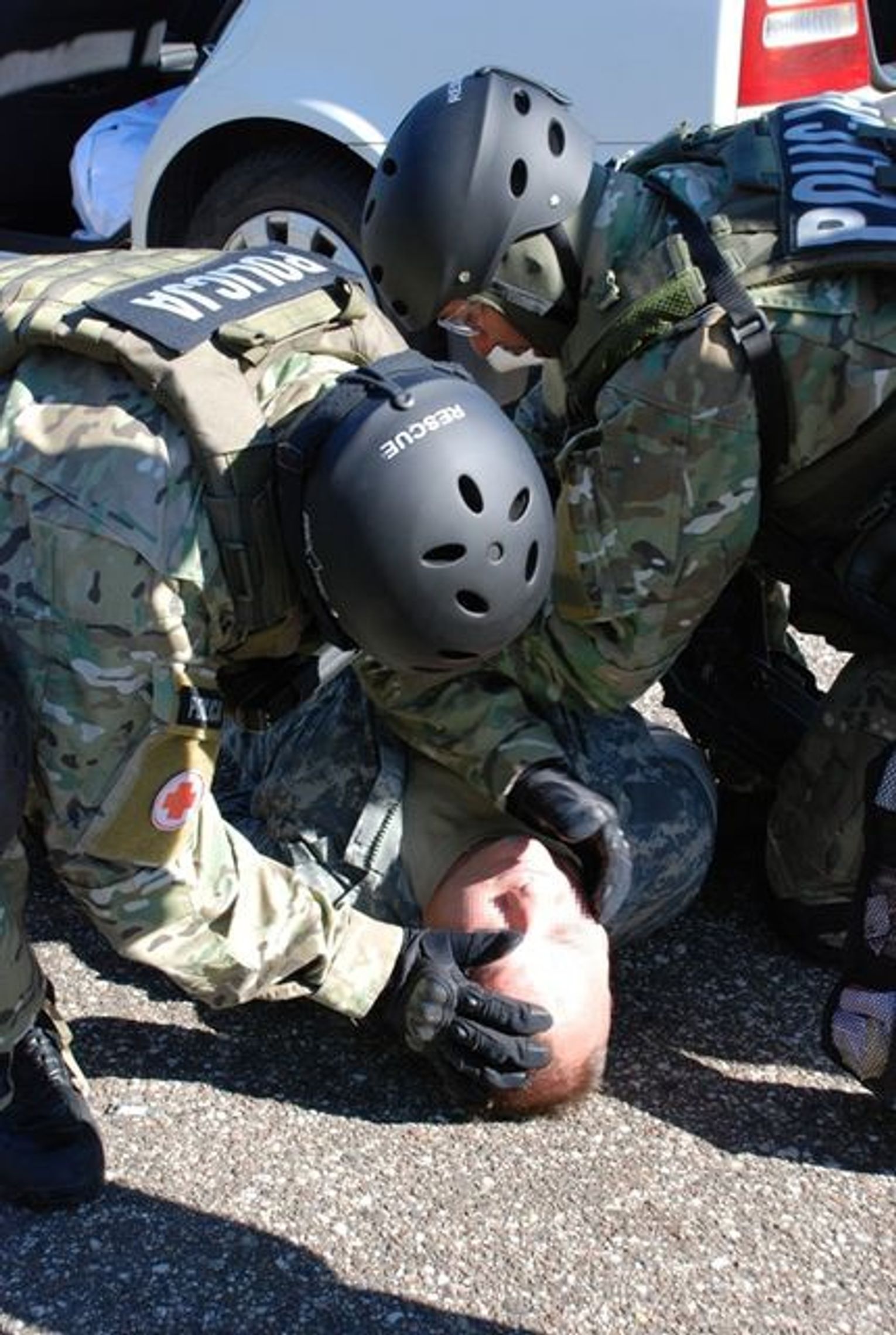 W konkurencji "Ewakuacja" zespół musiał ewakuować z miejsca zasadzki rannego funkcjonariusza przy pomocy pojazdu specjalnego "Żubr". W trakcie przemieszczania zespół musiał podjąć czynności ratownicze na pokładzie pojazdu. W innej konkurencji funkcjonariusze po pokonaniu w pełnym oporządzeniu morderczego toru przeszkód, musieli dostać się do budynku, odciąć samobójcę, który próbował się powiesić i udzielić mu niezbędnej pomocy do czasu przyjazdu pogotowia ratunkowego.