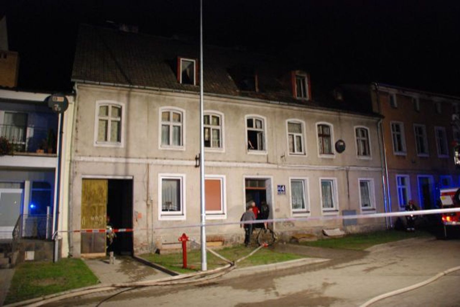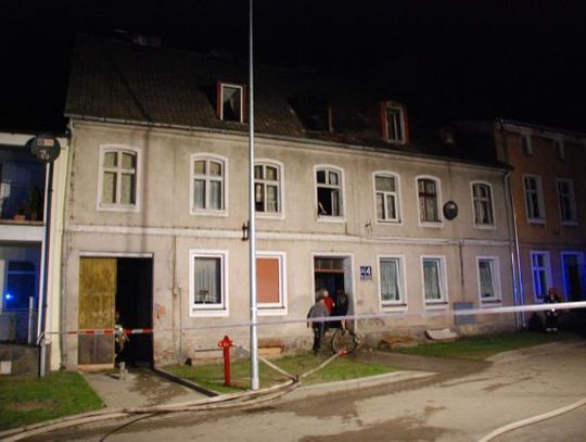 Kamienica paliła się w nocy z 3 na 4 października br. Natychmiast po otrzymaniu zgłoszenia o pożarze dyżurny Komisariatu Policji w Miastku na miejsce skierował patrol.