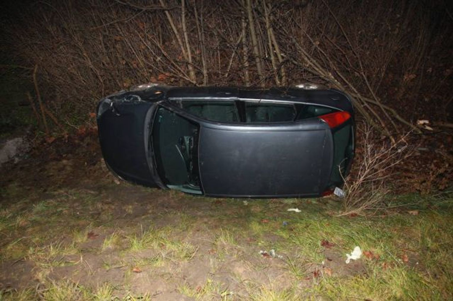 KOŚCIERZYNA. W Kościerskiej Hucie doszło do wypadku drogowego. Ford fokus wypadł z drogi. Kierująca samochodem kobieta miała w organizmie prawie cztery promile alkoholu, z potłuczeniami zabrano ją do szpitala.