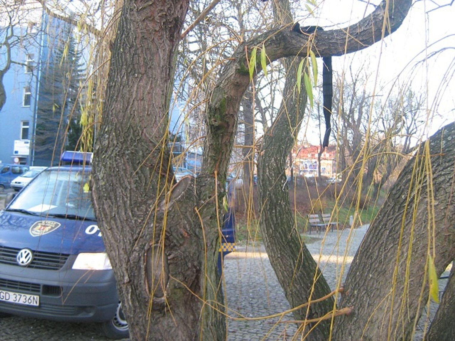 Wisiał na gałęzi drzewa w centrum Gdańska, z petlą na szyi