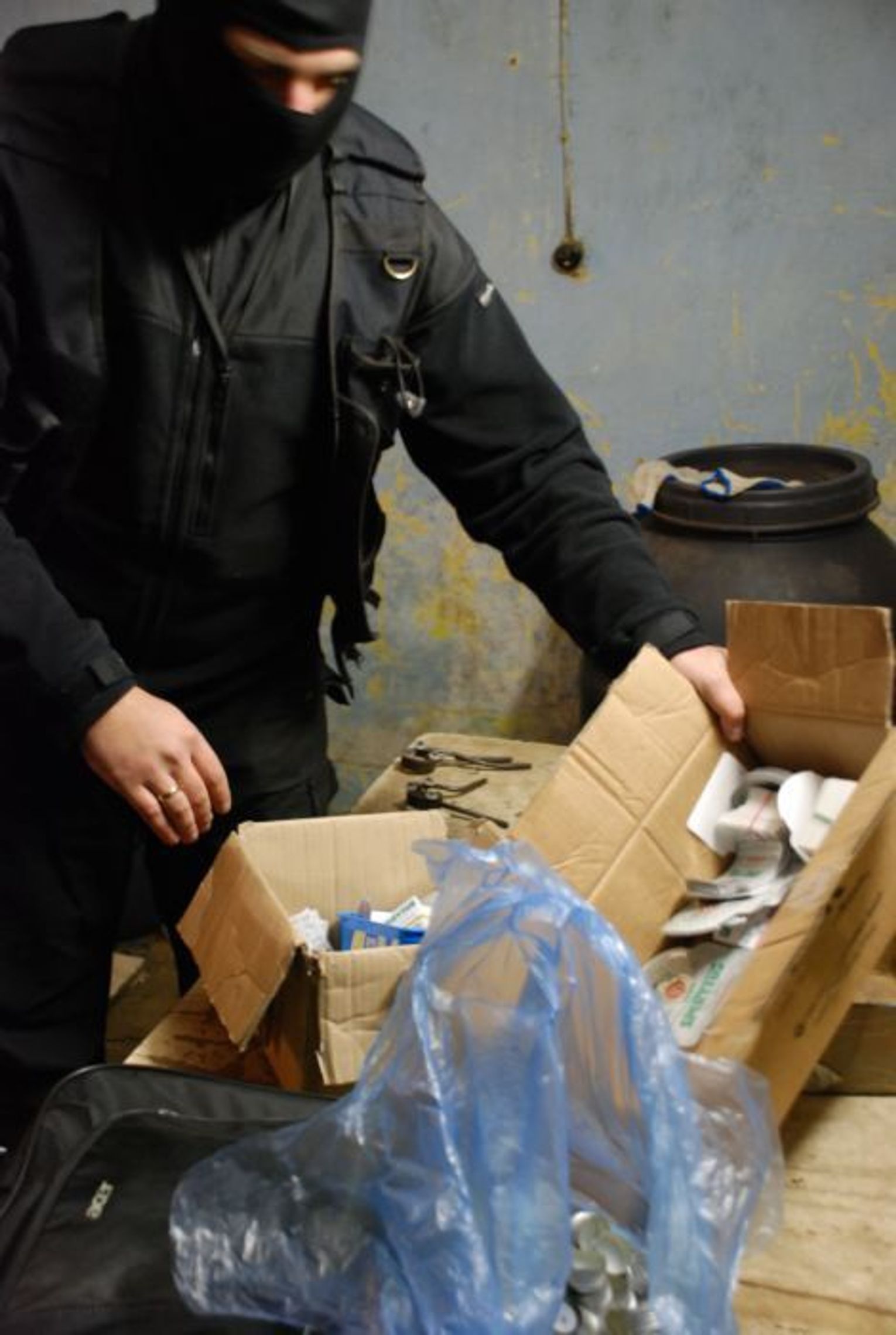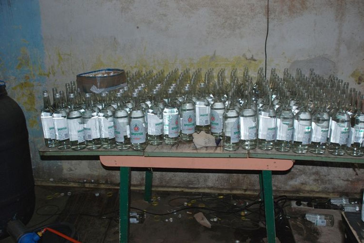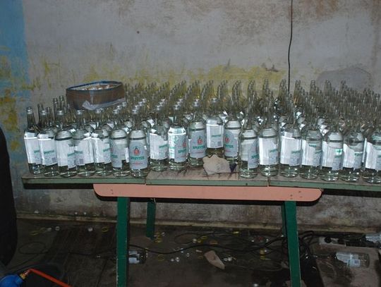 Na terenie tej posesji znaleziono całą linię produkcyjną. Znajdowało się tam również ok. 420 litrów spirytusu przygotowanego do dystrybucji, 56 worków 120-litrowych worków wypełnionych pustymi plastikowymi butelkami oraz kilka tysięcy podrobionych etykiet.