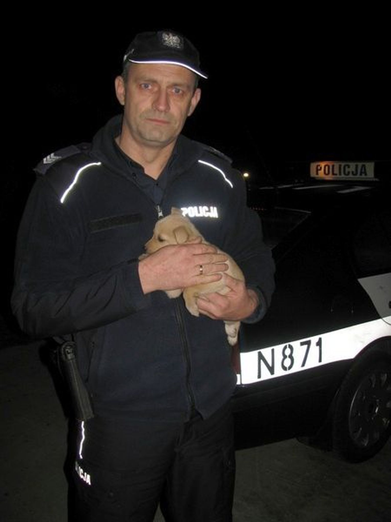 We wtorek policjanci z Lęborka jadąc ul. Syrokomli, na wysokości cegielni, małego błąkającego się pieska. Z uwagi na fakt, że w miejscu znalezienia szczeniaka nie ma żadnych zabudować a zwierzak był przemarznięty i wystraszony, Policjanci natychmiast zabrali go do radiowozu i przewieźli na komendę. Na miejscu nakarmili pieska kanapkami po czym przekazali do schroniska dla zwierząt w Małoszycach.