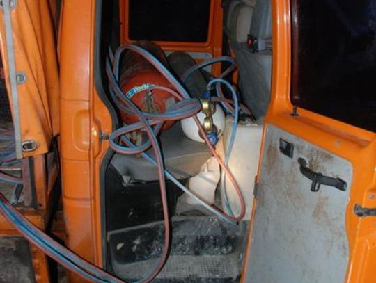 W halach tartaku zaparkowane były 2 pojazdy należące do sprawców. Na pojazdach znajdowały się butle z gazem z podłączonymi palnikami, którymi sprawcy chcieli pociąć elementy metalowe.