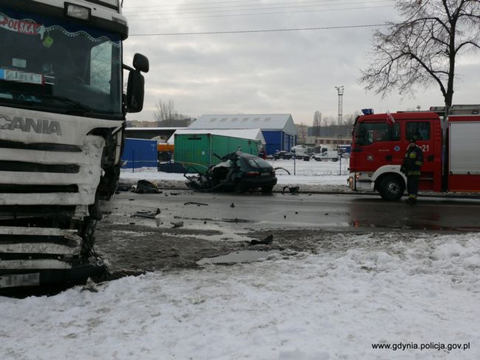 Zginął kierowca w wypadku w Gdyni - wjechał czołowo w TIRA