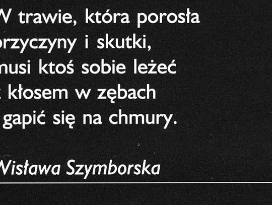 W dniu jej śmierci przypominamy to podziękowanie. Mamy nadzieję, że zapatrzeni w piękno PGE Arena P.T. Decydenci znajdą środki, o wiele mniejsze niż na boiskową trawkę, by wznowić album z mottem Wisławy Szymborskiej.