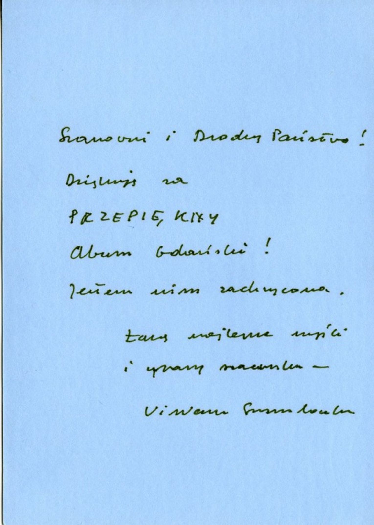 Tylko Wisława Szymborska pięknie nam podziękowała, dodając do słów unikatowy fotomontaż. Załączamy, tą bezcenną dzisiaj kartkę.
