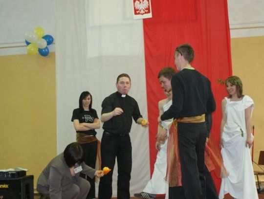 Jury składające z tych nauczycieli i pedagogów, którzy nie pełnią wychowawstwa w poszczególnych klasach, w tym z księdza Tadeusza Drobińskiego, oceniało uczestników w dwóch kategoriach – za przygotowanie straganu oraz za prezentację sceniczną. Grand Prix w unijnych konkurencjach zdobyła Polska – rzeczywiście, nie można mieć tu najmniejszego podejrzenia o nepotyzm, czy nacjonalizm jury, bowiem ich bigosik i chleb ze smalcem oraz rożne słodkości cieszyły się wielkim powodzeniem zebranych, straganowy stół uginał się wręcz od wiktuałów, a kiedy młodzież przedstawiła scenkę prezentującą „Wigilię polską” zebrani, pokładali się ze śmiechu. „Oj, wszystko to prawda. Zwłaszcza te wymuszone tradycyjne życzenia” – kiwał głową z na w pół smutnym uśmiechem ksiądz Tadeusz. W „unijnych zmaganiach” nagrodzone zostały klasy prezentujące Czechy i Portugalię.