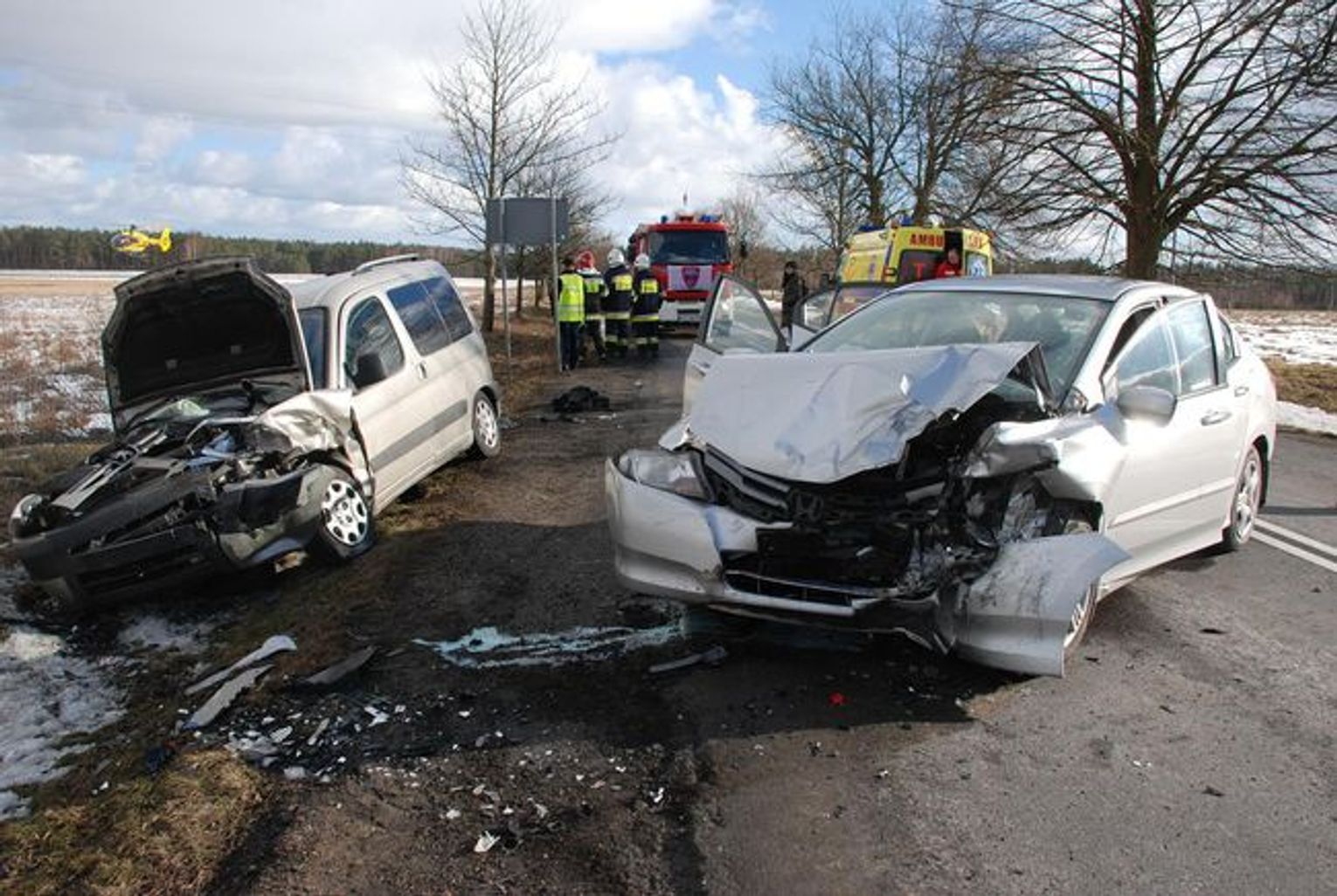 Ze wstępnych ustaleń policjantów wynika, że kierujący hondą jechał od strony Gwieździna. W pewnym momencie kierowca nagle zjechał na przeciwny pas ruchu i doprowadził do czołowego zdarzenia z jadącym z przeciwka peugeotem. Cztery osoby podróżujące autami zostały przewiezione do szpitala.