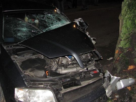 LĘBORK. 37-letni kierowca audi, mieszkaniec Lęborka, jadąc ulicą Topolową, prawdopodobnie z bardzo dużą prędkością, stracił panowanie nad pojazdem i uderzył z dużą siłą w stojącego na chodniku dostawczego fiata, a następnie, gdy urwało się przednie koło uderzył w drzewo.