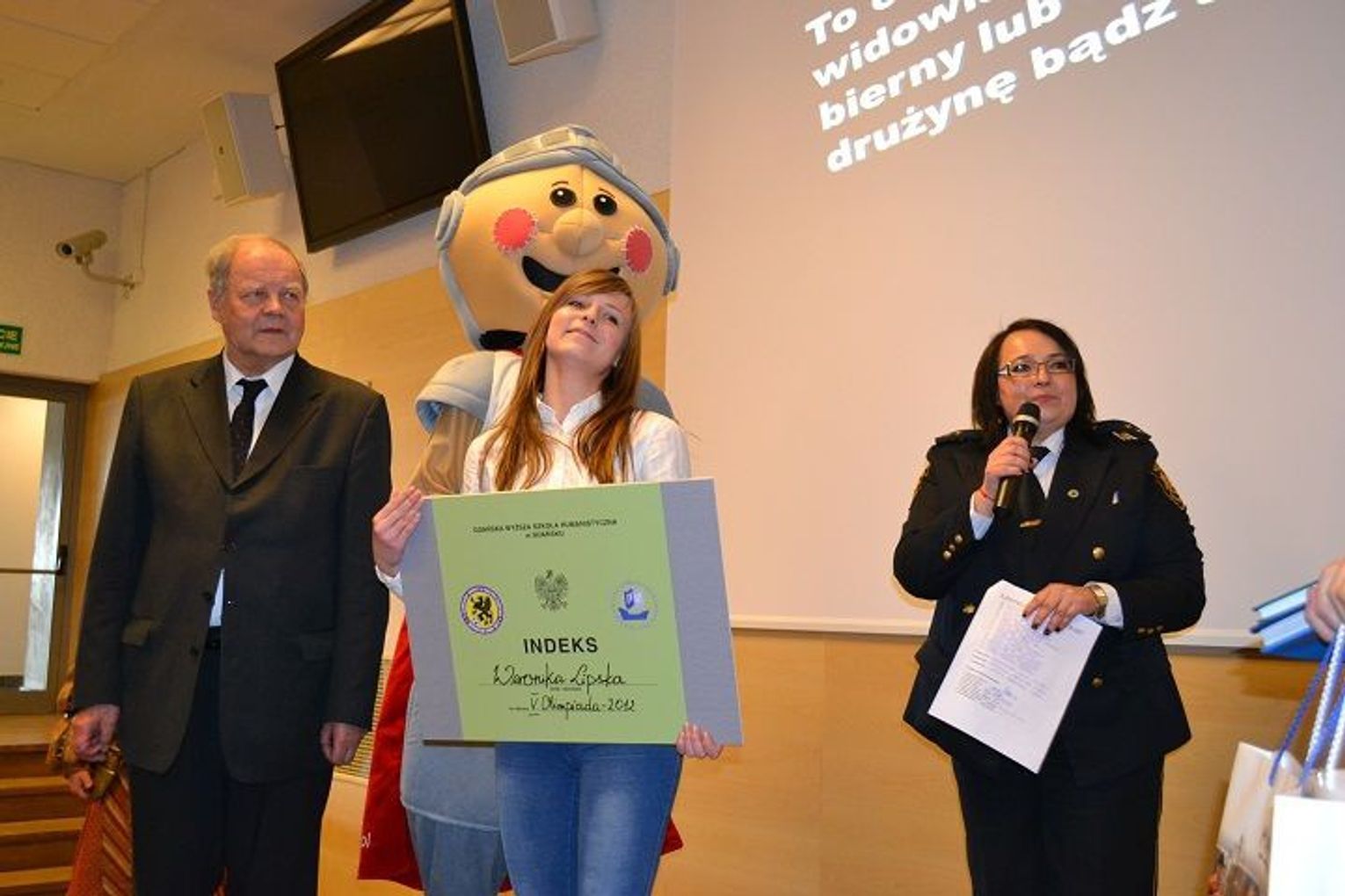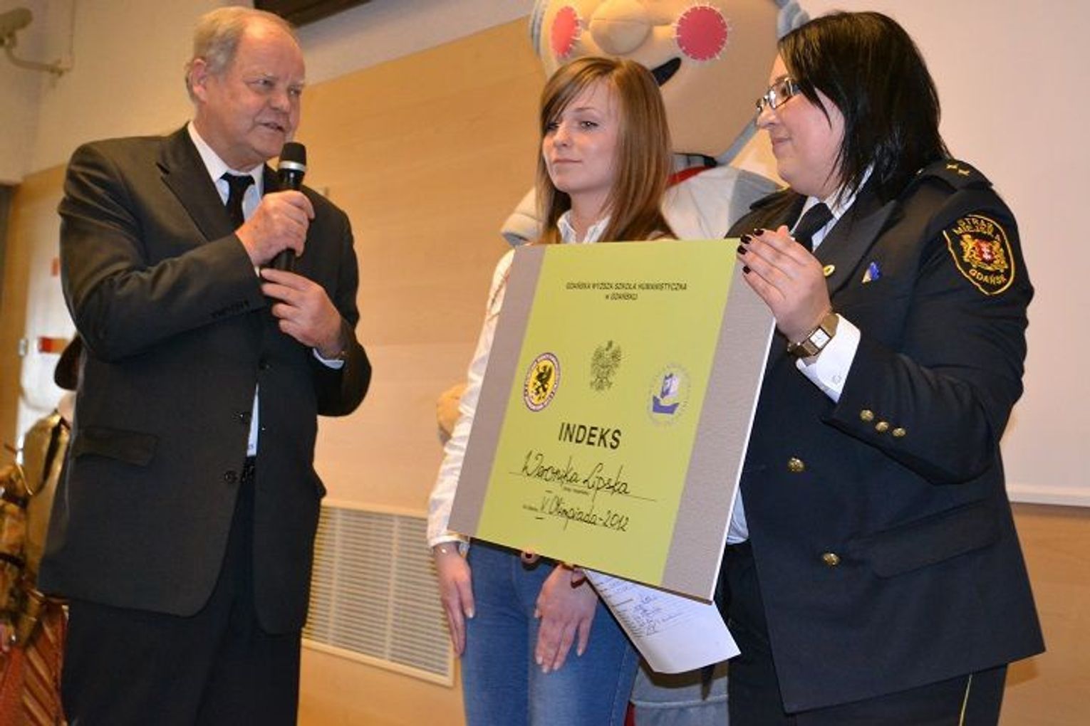 - Nasza uczelnia od początku bierze udział w organizacji Olimpiady, która pomaga młodzieży zbliżać się do problemów środowiska, w którym żyją, uczą się, będą pracować – powiedział prof. zw. dr hab. Zbigniew Machaliński, Rektor Gdańskiej Wyższej Szkoły Humanistycznej. – Bezpieczeństwo w czasie masowych imprez o charakterze politycznym, czy sportowym to obecnie problem numer jeden na całym świecie. Wszyscy zastanawiamy się, jak będzie z bezpieczeństwem w czasie Euro 2012. Kształcimy młodzież w zakresie zarządzania sportem, wiec problemy te, także na zajęciach na innych specjalnościach, obecne są u nas na co dzień. Laureatowi Nagrody Głównej co roku fundujemy indeks na dowolnie wybranym kierunku Gdańskiej Wyższej Szkoły Humanistycznej. Poprzedni laureaci Olimpiad, którzy uzyskali indeks do GWSH są bardzo dobrymi studentami, cieszymy się, że większość z nich pochodzi z mniejszych ośrodków.
