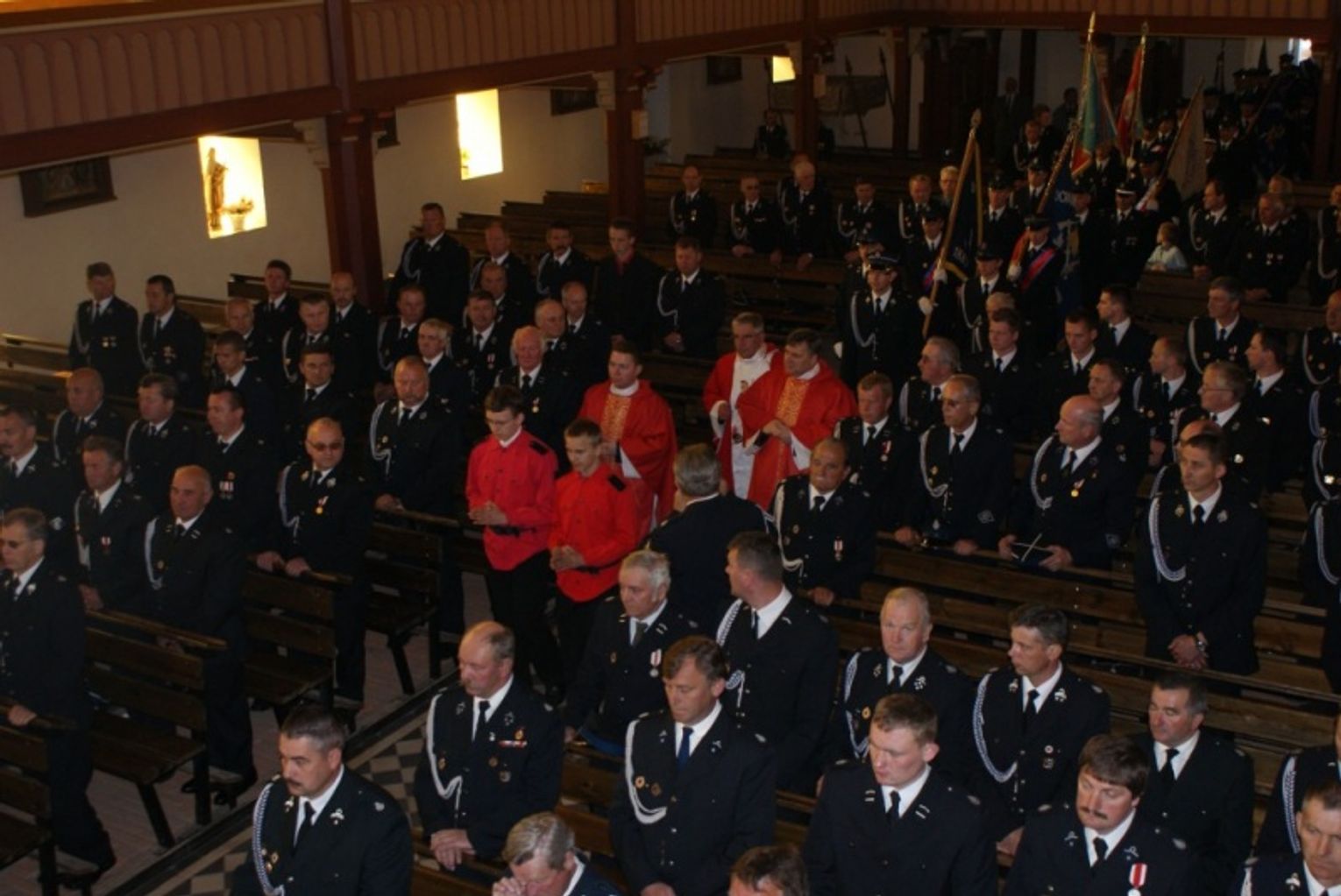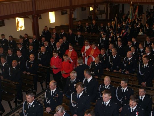 Po sformowaniu jednostek i pocztów sztandarowych, brać strażacka prowadzona przez Orkiestrę Dętą OSP z Bobowa przemaszerowała do skarszewskiego kościoła p.w. św. Maksymiliana Kolbe, gdzie skarszewscy księża proboszcz Ryszard Konefał, wikary Tadeusz Drobinski wraz z powiatowym kapelanem strażackim, księdzem Stefanem Rogowskim odprawili mszę św. – To piękna służba, kiedy służy się Bogu na chwałę a bliźniemu na pożytek – mówił w homilii ksiądz Rogowski - Dziś modlę się za was, aby zawsze wystarczało wam siły i odwagi, a także za tych waszych druhów, którzy są już po drugiej stronie ognia.