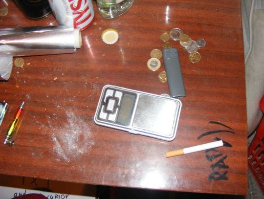 Policjanci pracujący na miejscu zabezpieczyli też folię aluminiową i wagę elektroniczną, za pomocą której mężczyźni tuż przed zatrzymaniem odmierzali porcje narkotyku.