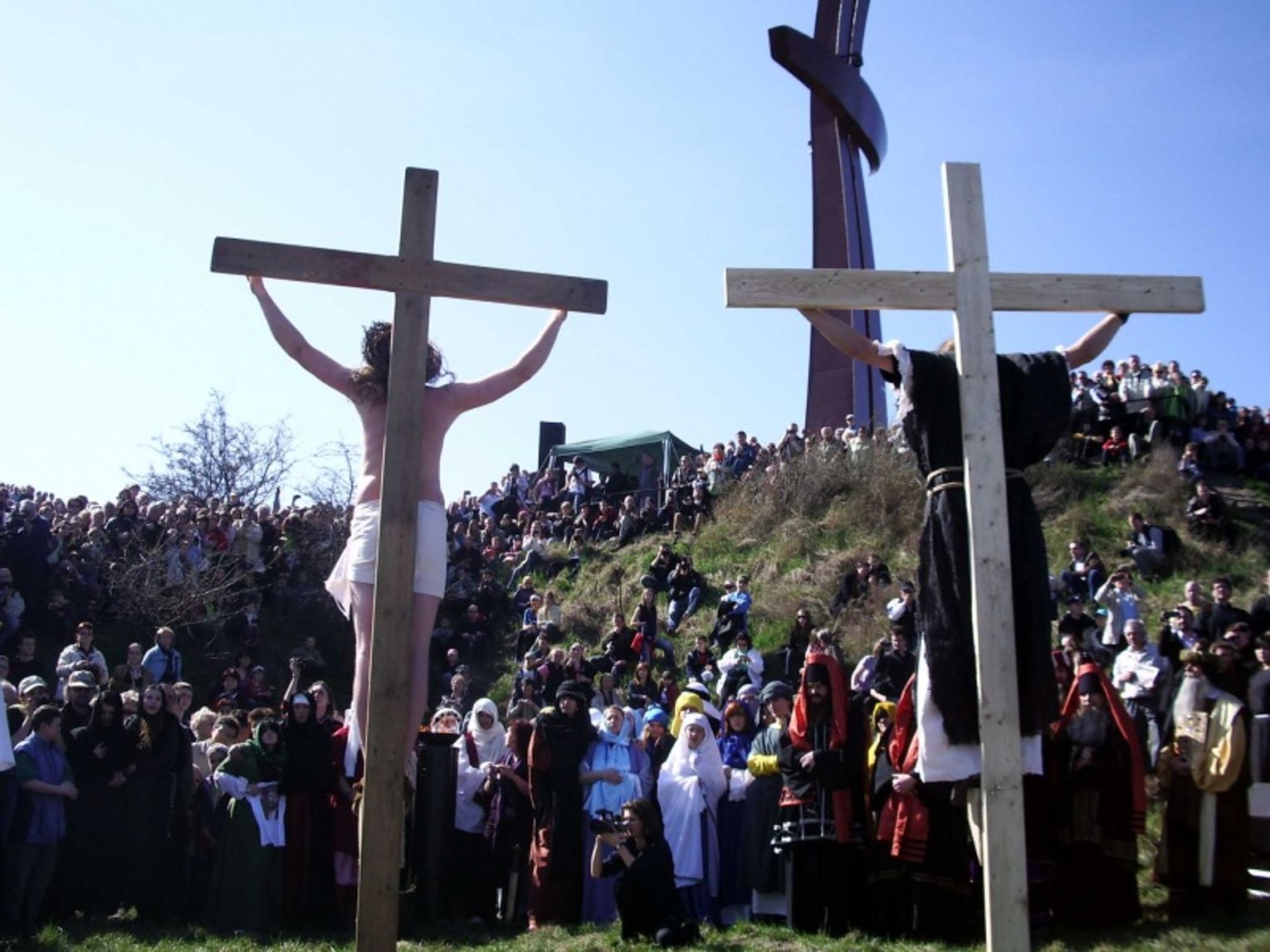 Wierni prowadzeni przez misternego Jezusa, żołnierzy i starszeństwo żydowskie (ubrani w starożytne stroje) przejdą ulicami Starego Miasta, a następnie pasażem kolejowym (pod dworcem PKP) na Górę Gradową - pod autentyczny krzyż milenijny. Tam odtworzone będą – zgodnie z zapisami Biblii - ostatnie sceny z życia Jezusa - ukrzyżowanie, śmierć (ok. godz. 15, w godzinie Miłosierdzia, czasu skonania Syna Bożego, jak 1979 lat temu).