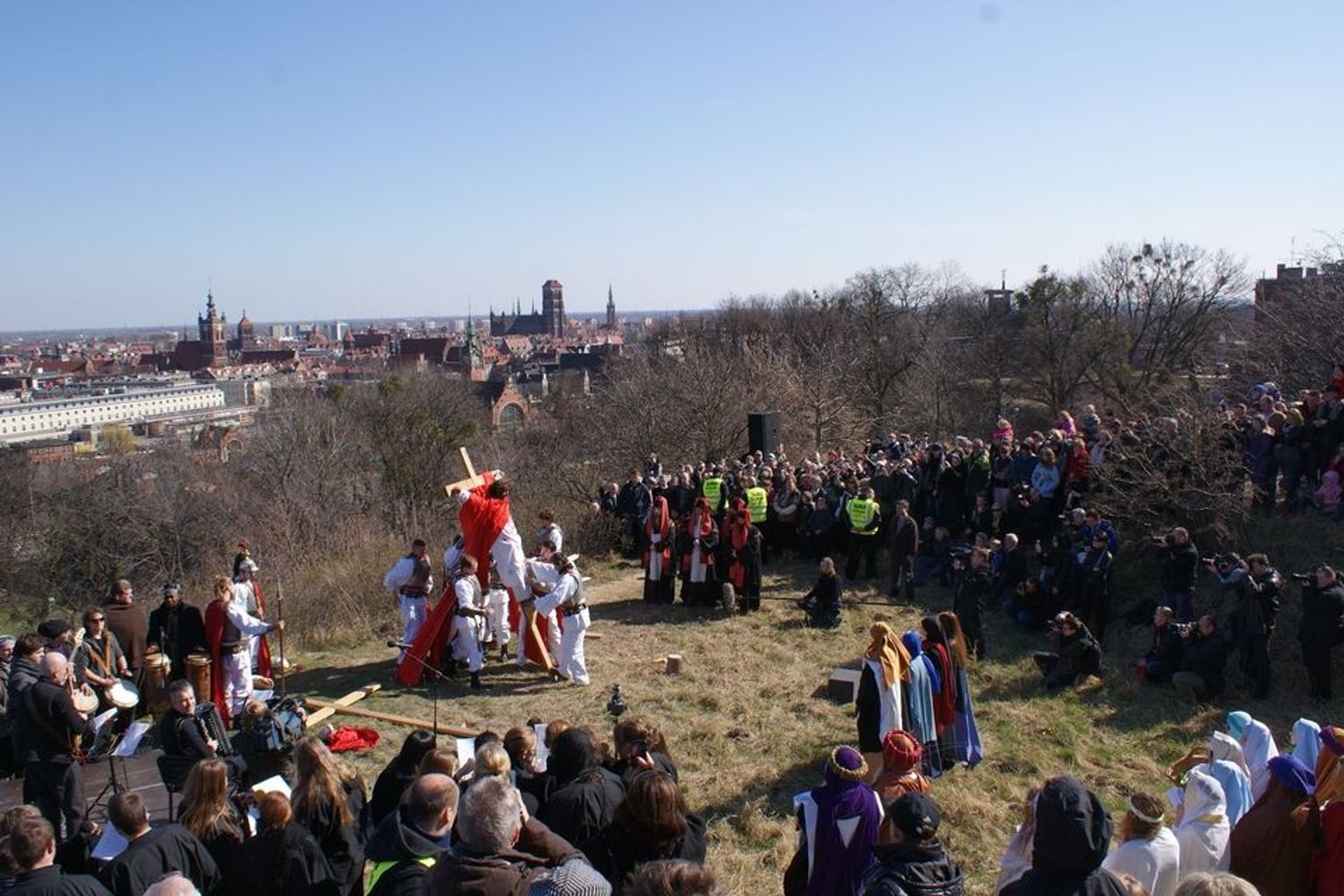Chrystus został osądzony na przedprożach Dworu Artusa. Aktorzy przedstawili sceny z wydarzeń w Jerozolimie - opisanych w Piśmie Świętym - od skazania na śmierć, poprzez kolejne upadki, pomoc Cyrenajczyka, sceny rozpaczy, szyderstwa aż do ukrzyżowania na Golgocie - na Górze Gradowej.