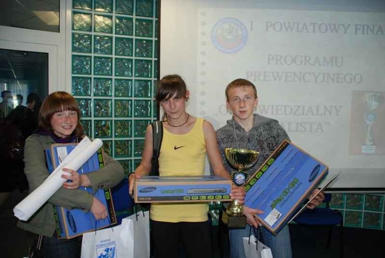 Patronat nad finałem objął Zarząd Terenowy Niezależnego Samorządnego Związku Zawodowego Policjantów w Starogardzie Gdańskim. I-sza edycja konkursu "Odpowiedzialny Gimnazjalista" została zamknięta przez Komendanta Powiatowego Policji w Starogardzie Gdańskim, insp. Mirosława Czarneckiego, który wręczył puchary uczestnikom oraz certyfikaty "Odpowiedzialna Szkoła" uczniom gimnazjum.