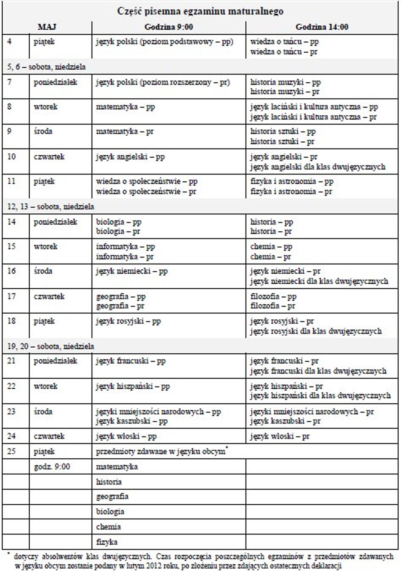 Egzaminy pisemne będą rozpoczynać się przed i po południu - o godzinie 9.00 i o 14.00.