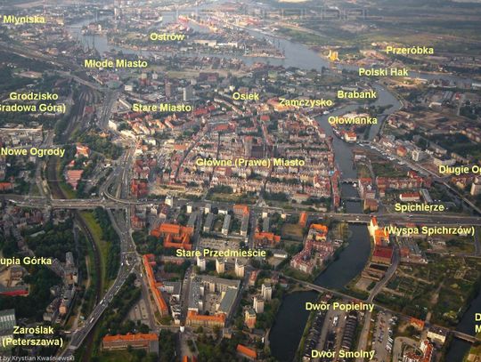 Omówione są dzielnice Śródmieścia: Prawe Miasto, Zamczysko, Stare Miasto, Osiek, Stare Przedmieście, Spichlerze, Ołowianka, Długie Ogrody, Rudno, Dolne Miasto, Nowe Ogrody, Grodzisko, Biskupia Górka, Zaroślak, Młode Miasto. Odnaleźć można informacje związane z pojawieniem się pierwszego zapisu każdej dzielnicy, pojawianiem się nazw ulic, opisane są dzieje dzielnic. W następnym rozdziale „Dzielnice poza Śródmieściem” czytamy informacje na temat 55 dzielnic znajdujących się na tym obszarze.