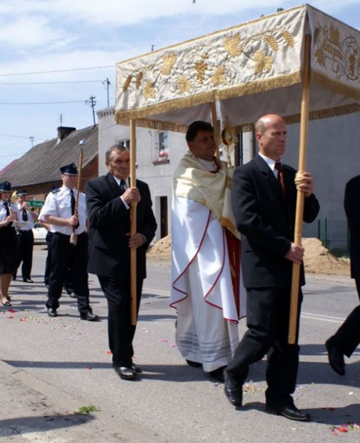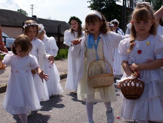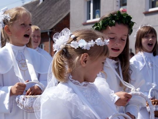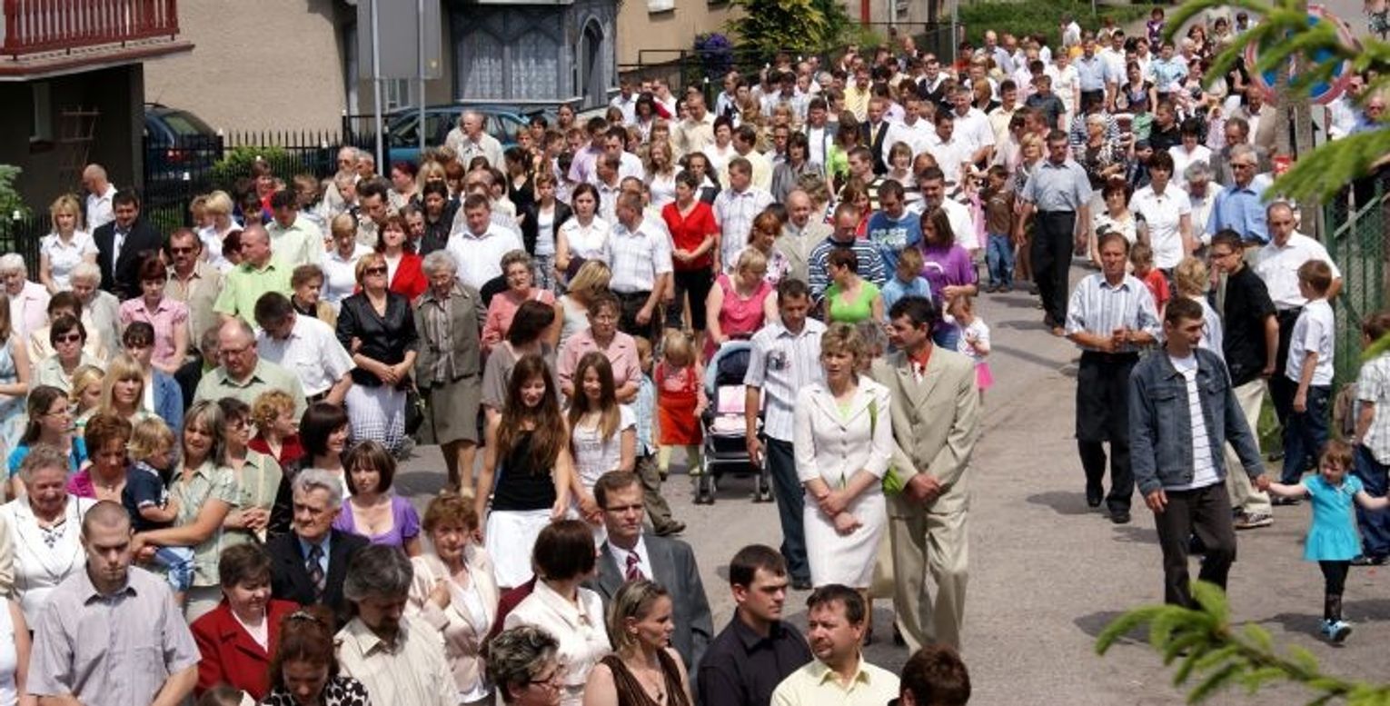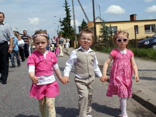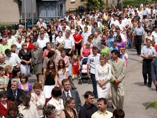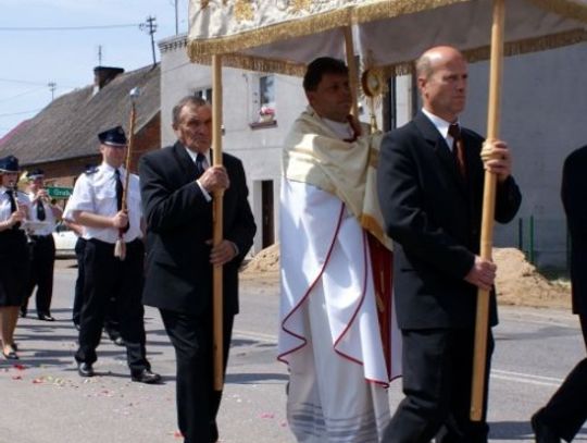 KOCIEWIE/Bobowo. Po nabożeństwie w kościele pw. św. Wojciecha mieszkańcy Bobowa przeszli w procesji ulicą Gdańską. Procesja tradycyjnie odbyła się w asyście Orkiestry Dętej OSP.