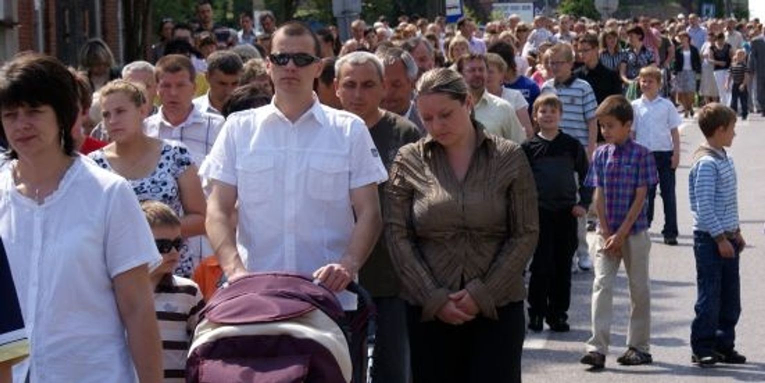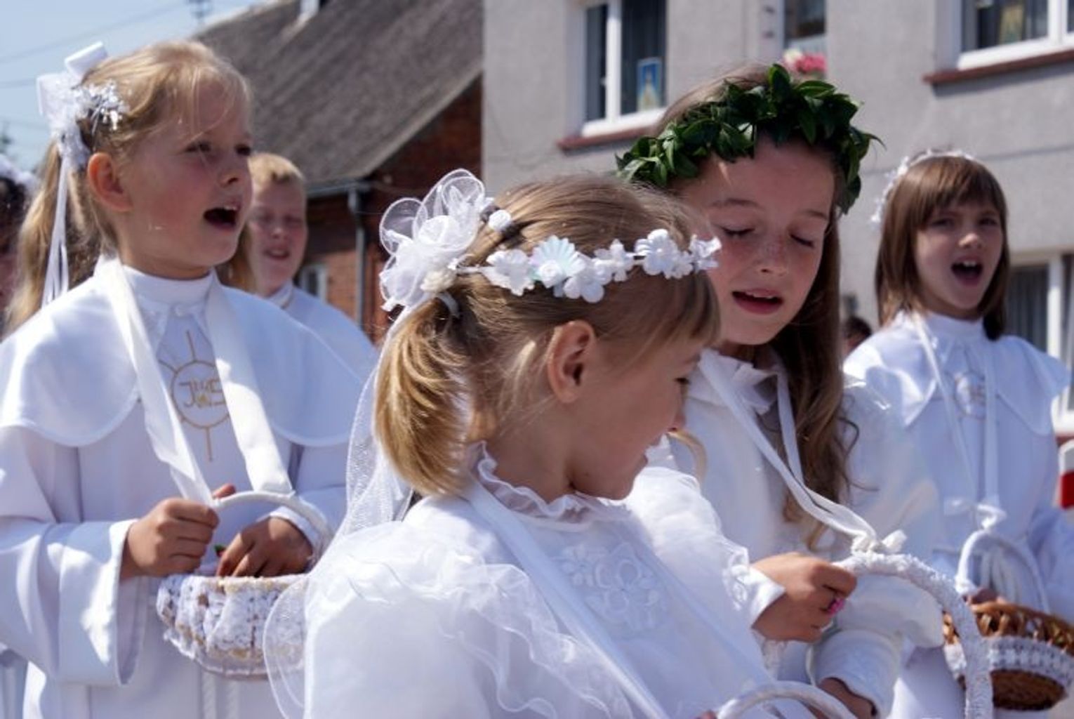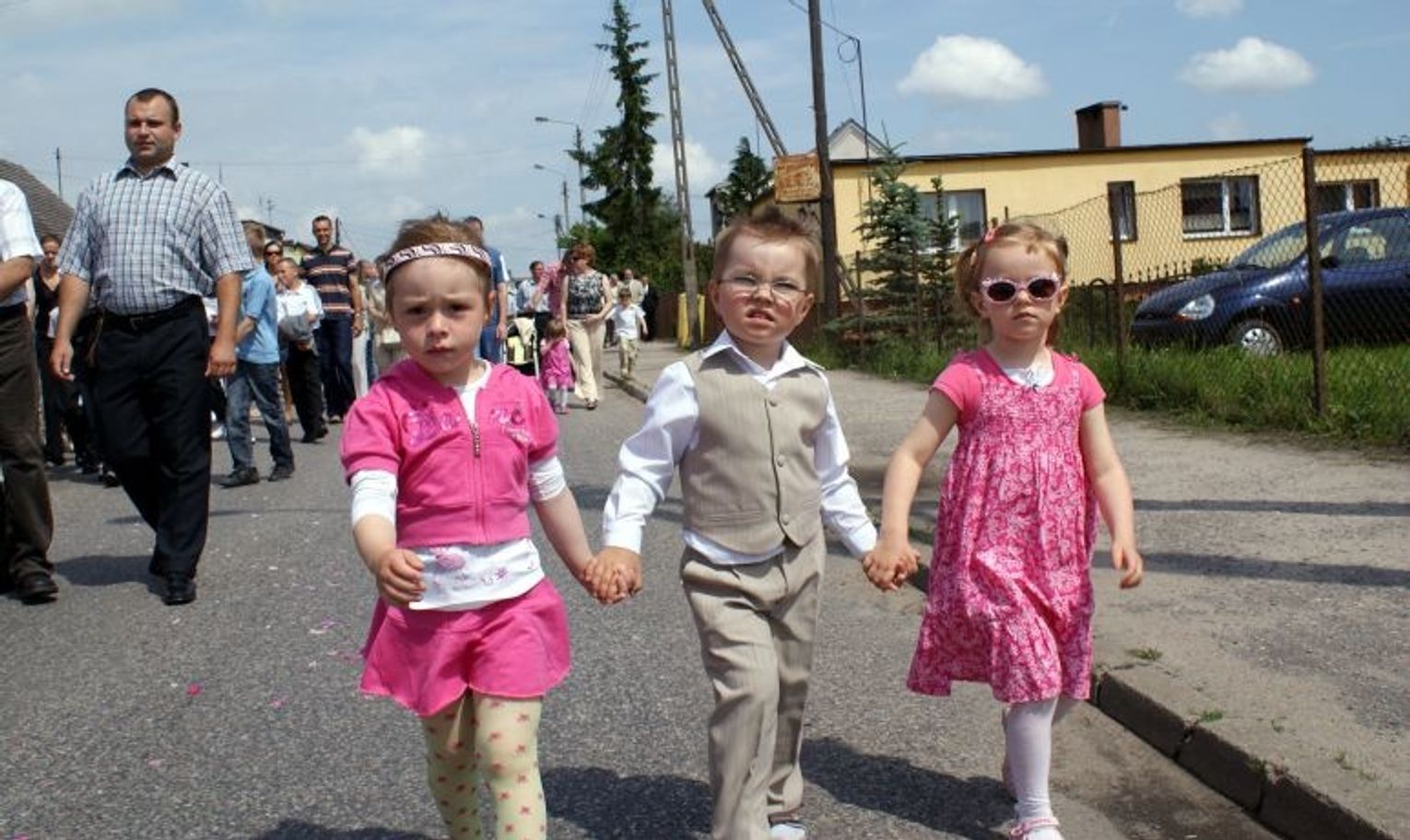 KOCIEWIE/Bobowo. Po nabożeństwie w kościele pw. św. Wojciecha mieszkańcy Bobowa przeszli w procesji ulicą Gdańską. Procesja tradycyjnie odbyła się w asyście Orkiestry Dętej OSP.