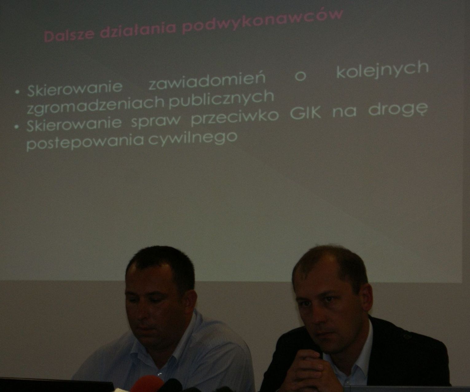 Na konferencji przedstawiono stan aktualny walki o swoje pieniądze – brak porozumienie z władzami miasta i spółki miejskiej GIK. Prezydenta Adamowicza nawet nie wyraził zgodę na tzw. zgromadzenie (pokojową manifestację na terenie budowy – na Trasie Słowackiego). Na konferencję w roli obserwatorów przybyli przedstawiciele GIK – pani wiceprezes Zarządu GIK Iwona Żygowska, rzecznik prasowy GIK Magdalena Skorupka-Kaczmarek i prawnik. Z odległych miejsc na sali słuchali wyjaśnień i argumentów przedsiębiorców. Zarzuty były ciężkie – fakty, konkretne zapisy z umowy, przepisy prawa i wykładnia Sądu Najwyższego w sprawie oraz brak rzeczowych działań chroniących ich interes – jako rzeczywistych wykonawców - przez spółkę miejską – prowadzącego tę inwestycję.