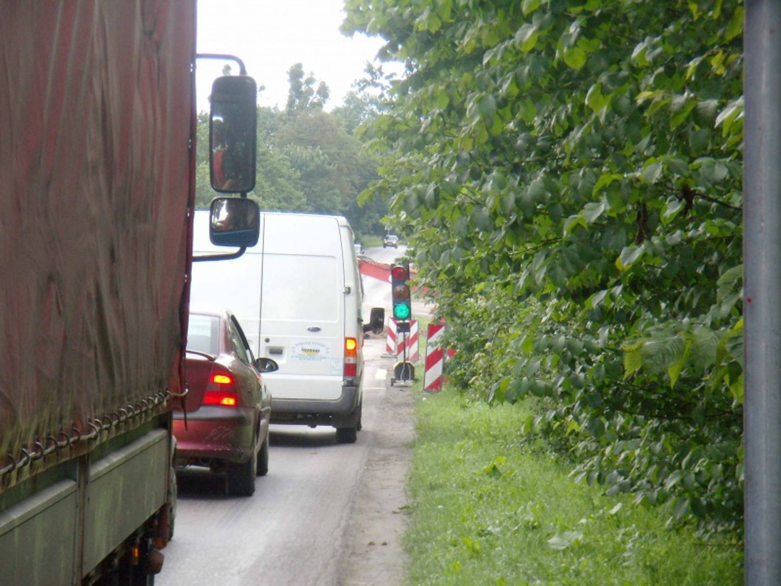 W związku z przeprowadzanymi robotami drogowymi ruch w tym miejscu odbywa się wahadłowo, a prędkość ograniczona została do 40 km/h.