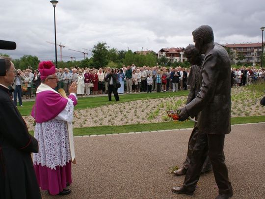 14 lipca w tym parku odsłoniliśmy pomnik Papieża Jana Pawła II i Prezydenta Ronalda Reagana. List do uczestników uroczystości przesłał syn prezydenta Michael Reagan. Dziś Ks. Abp poświęci pomnik w miesiąc przed 25 rocznicą Ich spotkania w Miami na Florydzie. Pomnik wykonano na podstawie zdjęcia wykonanego w parku przez Scotta Stewarta z agencji Associated Press 10 września 1987 r. Figury pomnika wykonali dwaj rzeźbiarze z Gdańska: Bogusław Szycik i Stanisław Milewski. Zdjęcie przedstawia Papieża i Prezydenta rozmawiających jak serdeczni przyjaciele. Papież i Prezydent kochali ludzi i chcieli być blisko nich. Stowarzyszenie Godność - inicjator budowy pomnika - przekonało władze Miasta Gdańska, że ten pomnik należy zbudować w tym parku, gdzie tak chętnie mieszkańcy odpoczywają całymi rodzinami. Ideę budowy pomnika popierał Prezydent Paweł Adamowicz. Orędownikiem budowy pomnika był śp. Maciej Płażyński. Projekt pomnika w dniu 1 marca 2011 r. zatwierdził ks. abp Sławoj Leszek Głódź Metropolita Gdański. Ks. Abp powiedział wówczas „ciekawy projekt, zapewne podoba się mieszkańcom, będzie także atrakcją dla turystów, jeżeli zbierzecie pieniądze, budujcie”. Naszą intencją było nie tylko oddanie Im hołdu, ale chcieliśmy, sby odpoczywający tu mieszkańcy Gdańska i turyści patrząc na pomnik uświadomili sobie jak wielkimi ludźmi byli Papież Jan Paweł II i Prezydent Ronald Reagan, jakie mieli idee, w co wierzyli i co im zawdzięczamy, my tu żyjący Polacy.