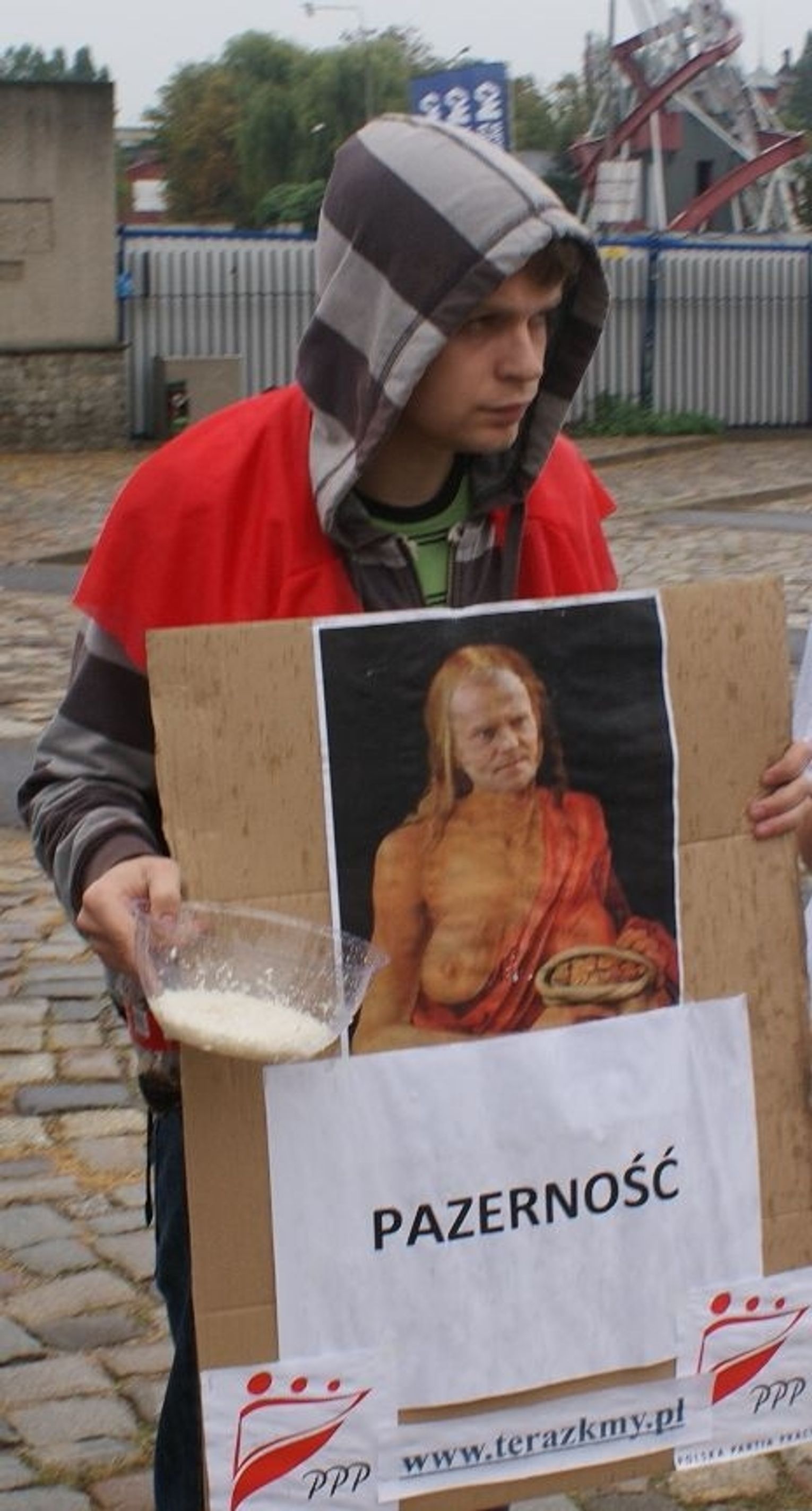 - Pan Adamowicz w świetle kamer pokazał swoją butę i arogancję. Odwrócił się do nas plecami i uciekał, Nie chciał wyjaśniać w imieniu PO kiedy zostanie zrealizowana obietnica wyborcza tej partii sprzed roku rozwiązania problemu umów śmieciowych - relacjonuje Patryk Kosela. - Adamowicz, jak i jego szef Donald Tusk wolą brylować na salonach "układu gdańskiego" i zajadać kawior z szefami Amber Gold. Społeczeństwo ich nie interesuje i nawet tego nie ukrywają - dodaje.