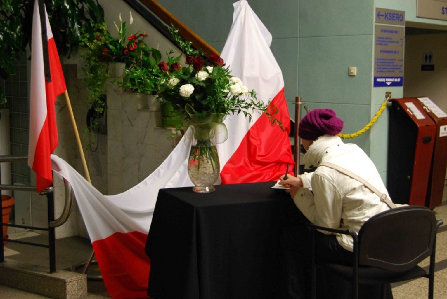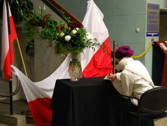 Coraz więcej osób przybywa do Urzędu Miasta, by złożyć wpis do wyłożonej tu księgi kondolencyjnej. Pierwszymi osobami, które wpisały się do niej byli Prezydent Miasta Wojciech Szczurek i Przewodniczący Rady Miasta Stanisław Szwabski.