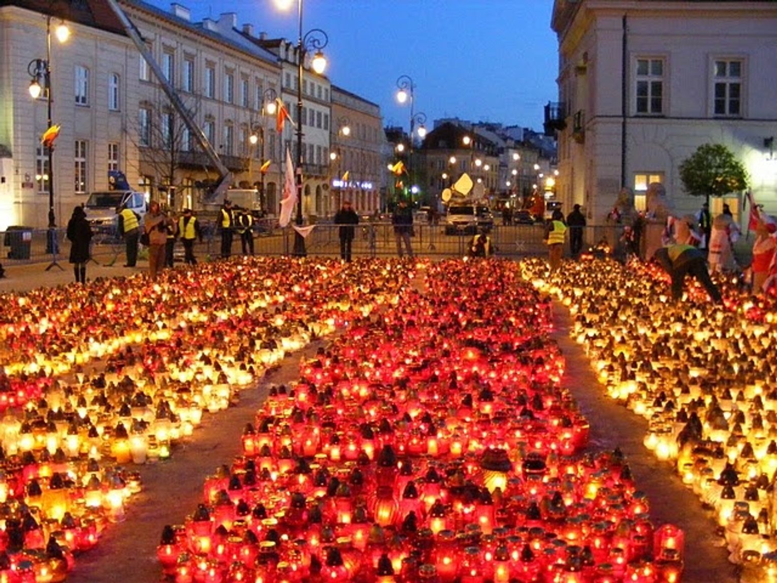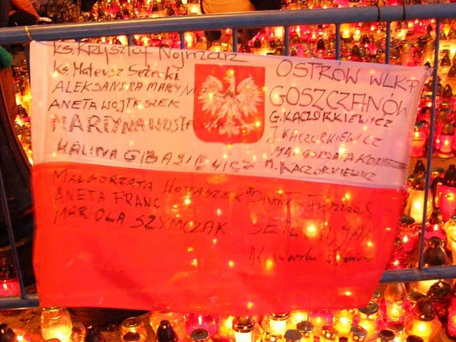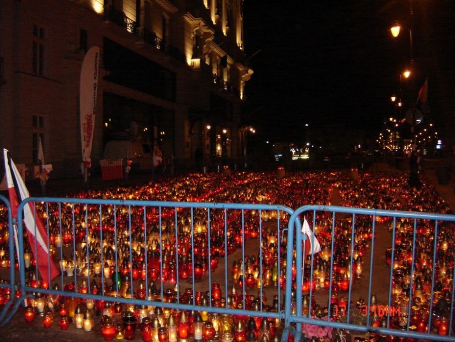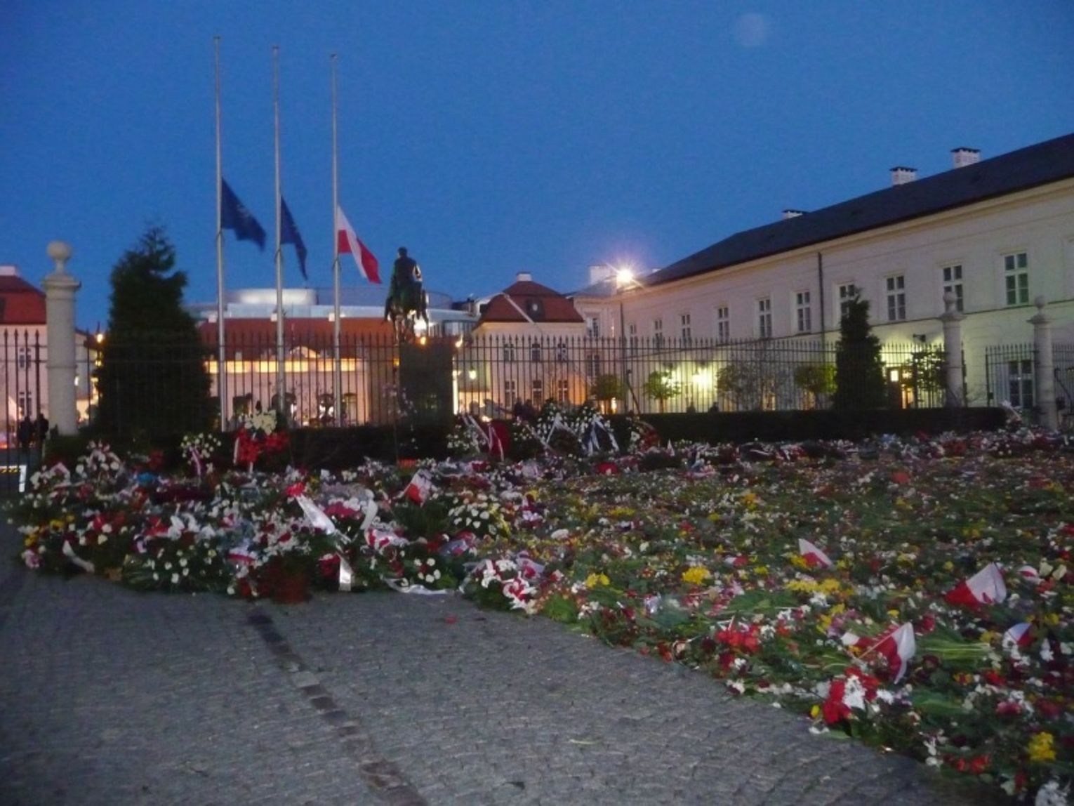 Cały dziedziniec pokrywało morze kwiatów i zniczy, a przybyli odmawiali modlitwy w intencji ofiar katastrofy.