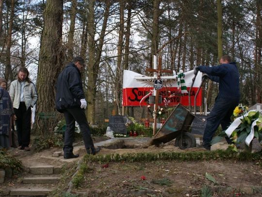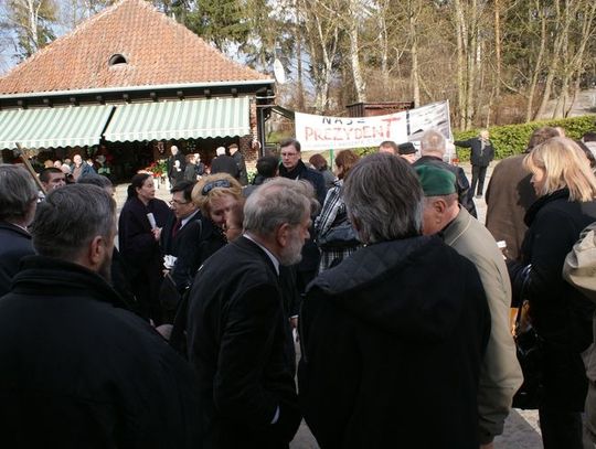 Na pogrzebie wśród wielu transparentów ze znakiem Solidarności i Solidarności Walczącej pojawił się także napis "Ten popełnił zbrodnię, kto na niej skorzystał". Trzymał go m.in. b. działacz WZZ Błażej Wyszkowski. Był również transparent ze słowami: "Hańba wierzącym w sierp i młot. Chwała za niepodległość zmarłym. Jedynie prawda jest ciekawa". (Interia.pl)
