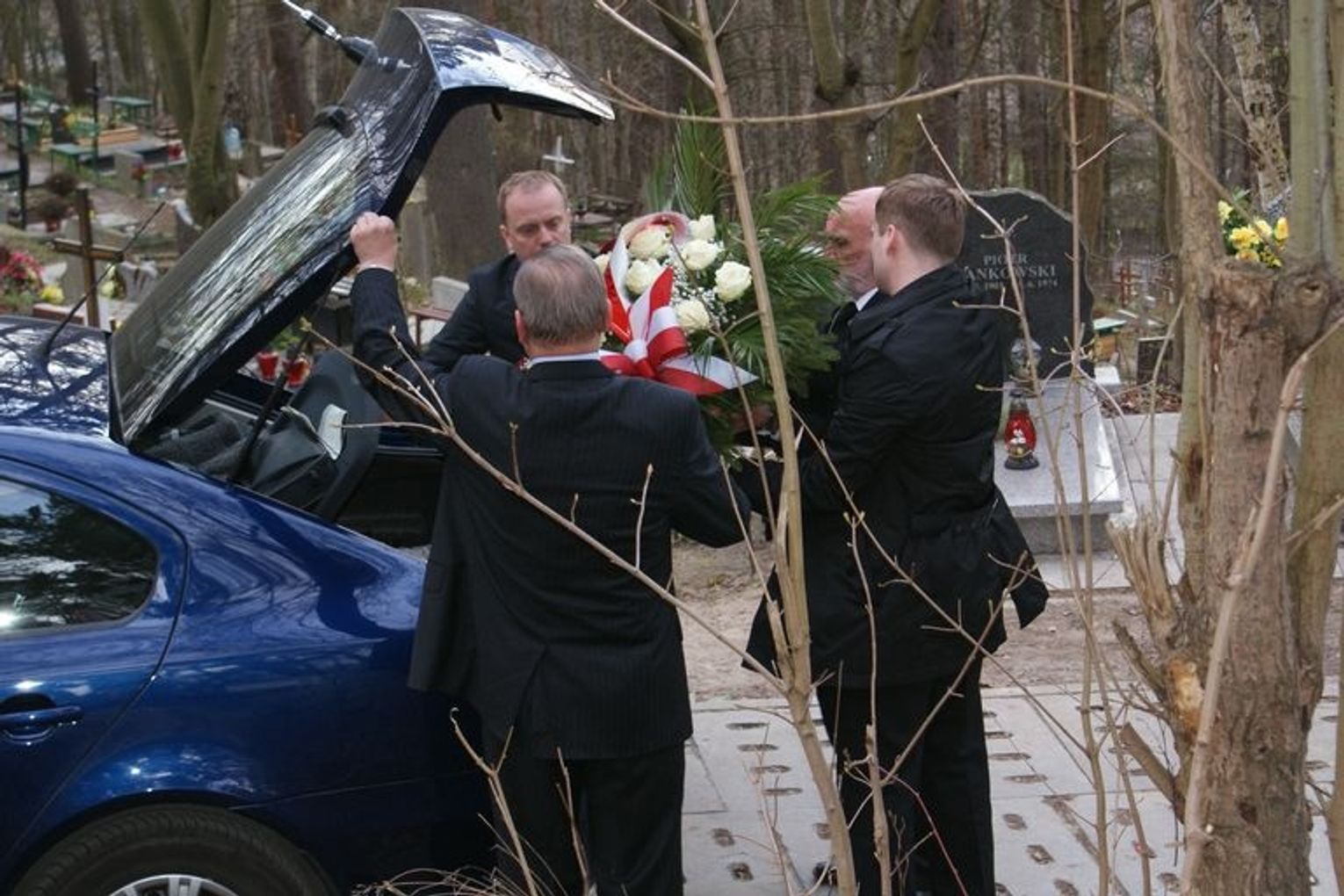 Nasz reporter był przy grobie śp. Anny Walentynowicz do końca – już po ceremonii pogrzebowej. Dokumentował ostatnie czynności związane z pochówkiem – zakopanie grobu, ułożenie wieńców. Nie czekał na ekipę w wieńcem od Marszałka Sejmu, nikt mu nie dał „cynku”, że taka delegacja jeszcze przyjedzie. Po prostu - był tam i przypadkowo był także świadkiem przyjazdu samochodu z osobami, które przywiozły wieniec z napisem Marszałek Sejmu – Bronisław Komorowski.