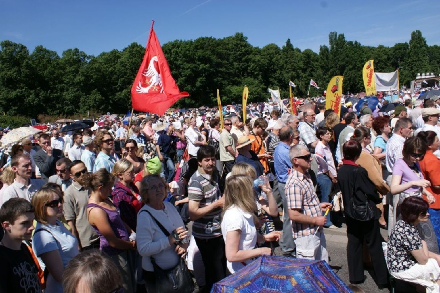 W uroczystej mszy na pl. Piłsudskiego uczestniczyło ok. 250 tys. osób. Wśród nich znajdują się m.in. parlamentarzyści, przedstawiciele innych wyznań, samorządowcy, rektorzy wyższych uczelni, przedstawiciele ruchów i organizacji katolickich, "Solidarności", wojsko i policja.