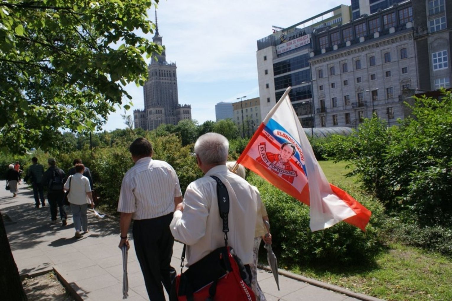 Po mszy odbyła się kilkugodzinna procesja z relikwiami ks. Jerzego do Świątyni Opatrzności Bożej. Dwunastokilometrowa trasa wiodła od pl. Piłsudskiego - Traktem Królewskim - do Świątyni Opatrzności Bożej w Wilanowie. Na poszczególnych odcinkach relikwie i obraz beatyfikacyjny namalowany przez lubelskiego artystę Zbigniewa Kotyłło nieśli przedstawiciele różnych środowisk zawodowych i kościelnych oraz parafianie.