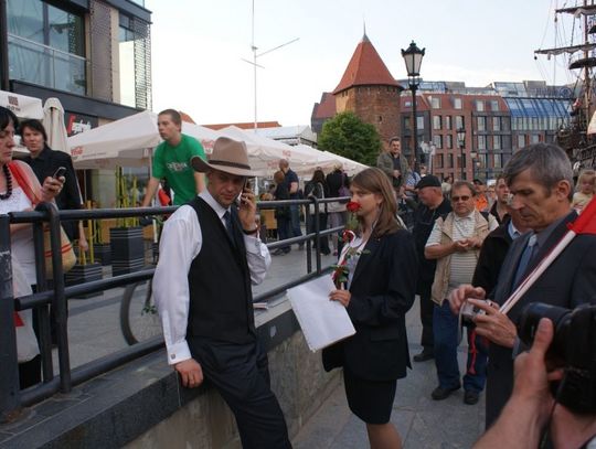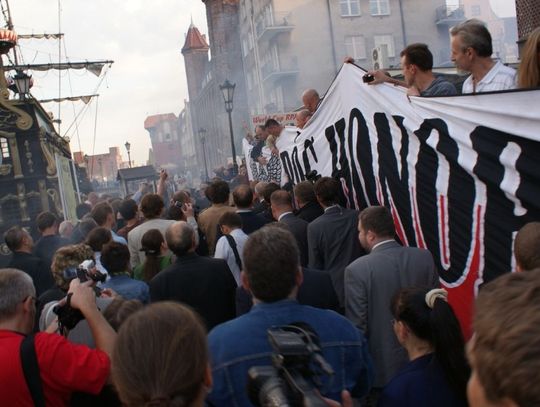 W tym czasie w Gdańsku, na Targu Rybnym, o godz. 18.30 rozpoczął się wiec solidarnościowy z udziałem m.in. przewodniczącego NSZZ Solidarność Janusza Śniadka, działaczy pierwszej Solidarności - Andrzeja i Joanny Gwiazdy, członków społecznego komitetu poparcia Jarosława Kaczyńskiego na Urząd Prezydenta (na czele z inicjatorką powołania tego komitetu - opozycjonistką Ewą Kubasiewicz), ks. prałata Henryka Jankowskiego.