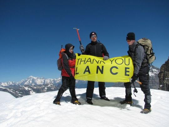 w którym uczestniczy Lance Armstrong. On również pokonał raka i pokazał, że można wrócić do życia sprzed choroby, dlatego uczestnicy poprzez swój trud pragnęli zwrócić uwagę na postać i działalność Fundacji stworzonej przez tego wybitnego sportowca. Na tę okazję przygotowali specjalne podziękowanie na szczycie trzymając w rękach napisy: THANK YOU LANCE oraz POKONAJ RAKA.