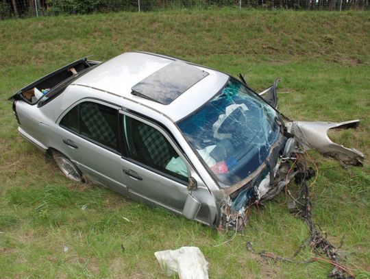 Samochód, którym kierował mieszkaniec Katowic został wyrzucony w powietrze, a następnie po dachowaniu zatrzymał się na poboczu. Pomimo podjętej reanimacji kierowca zmarł.