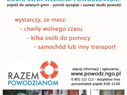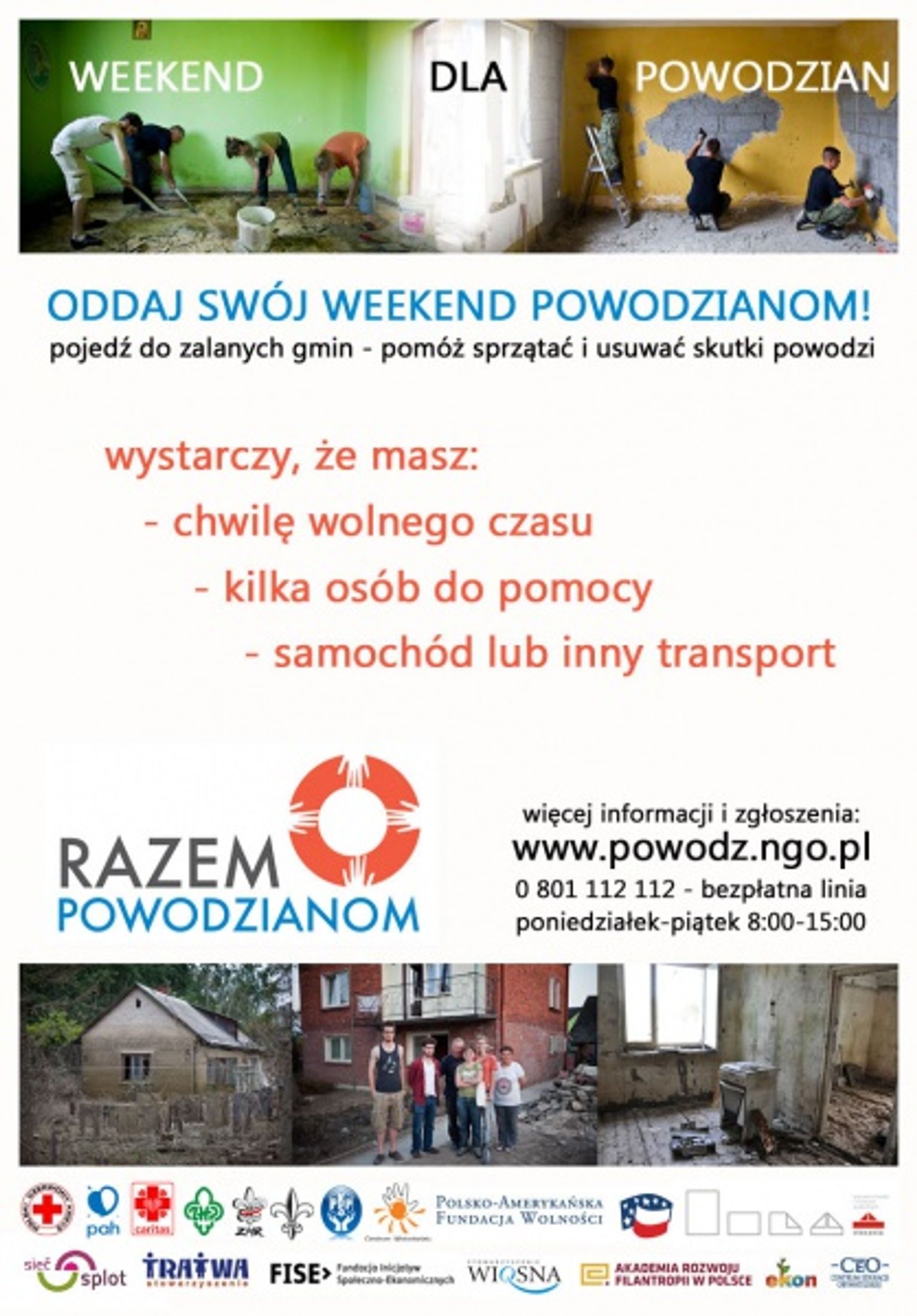 Na zgłoszenia czekamy pod numerem: 801 112 112, na stronie internetowej: www.powodz.ngo.pl lub przez serwis alert.powodz.ngo.pl. “Weekend dla powodzian” to akcja społeczna, za którą stoi kilkanaście organizacji pozarządowych zrzeszonych w inicjatywie “Razem powodzianom”.