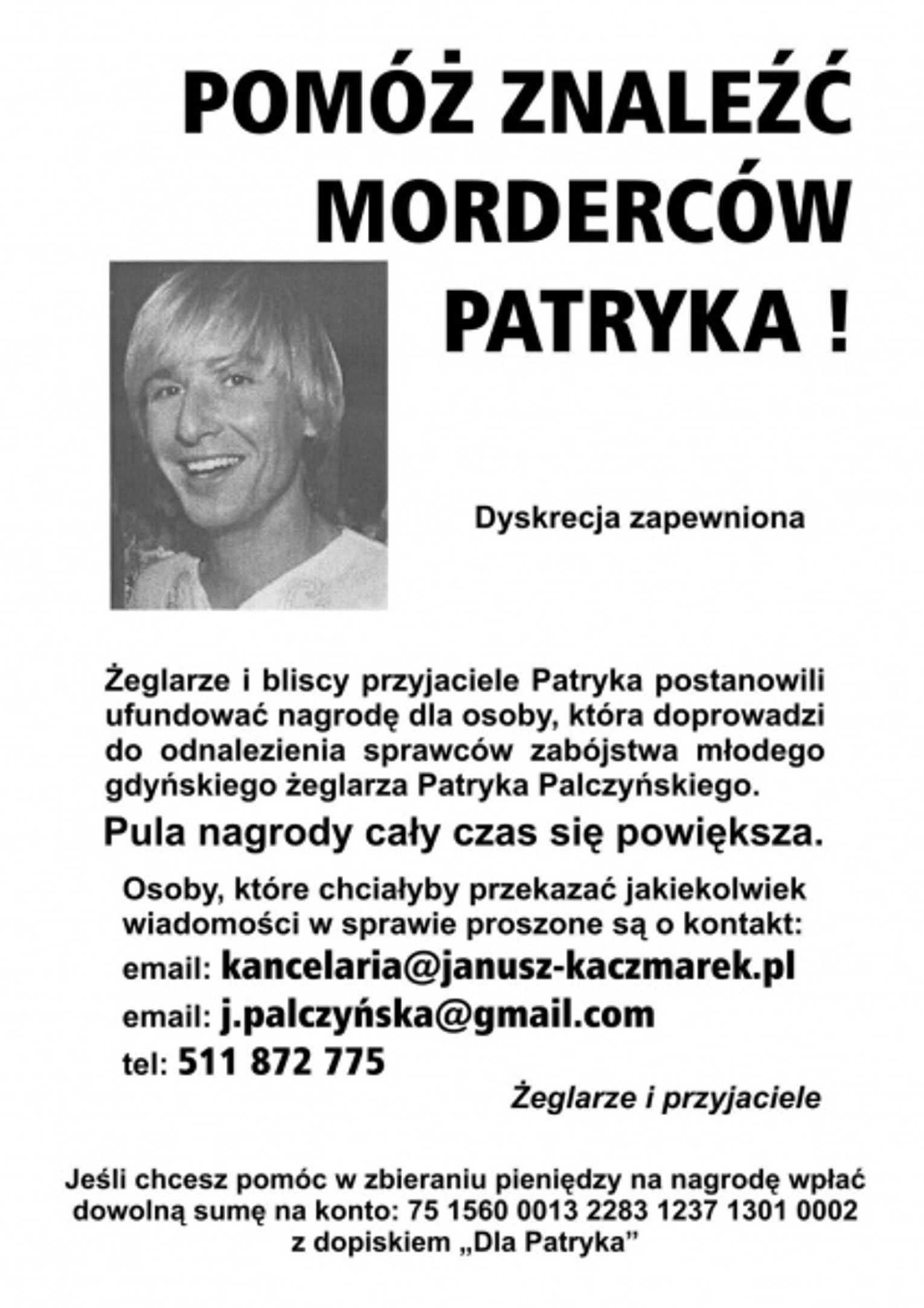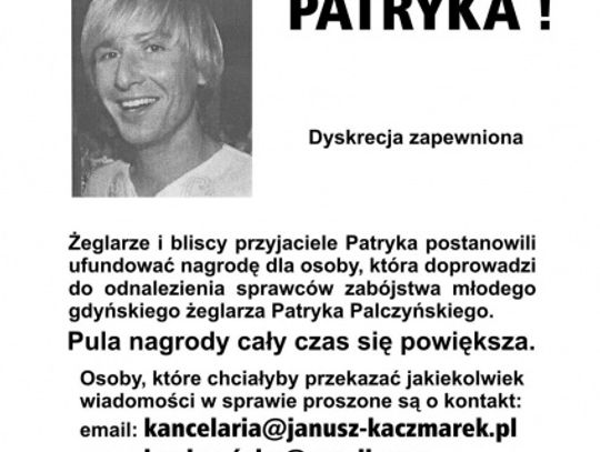 Julita i Bogusław Palczyńscy, rodzice zamordowanego młodego gdyńskiego żeglarza Patryka, zaapelowali podczas konferencji prasowej w Urzędzie Miasta Gdyni o pomoc w poszukiwaniu sprawców zbrodni. Żeglarze i bliscy przyjaciele Patryka postanowili ufundować nagrodę dla osoby, która doprowadzi do ich odnalezienia.