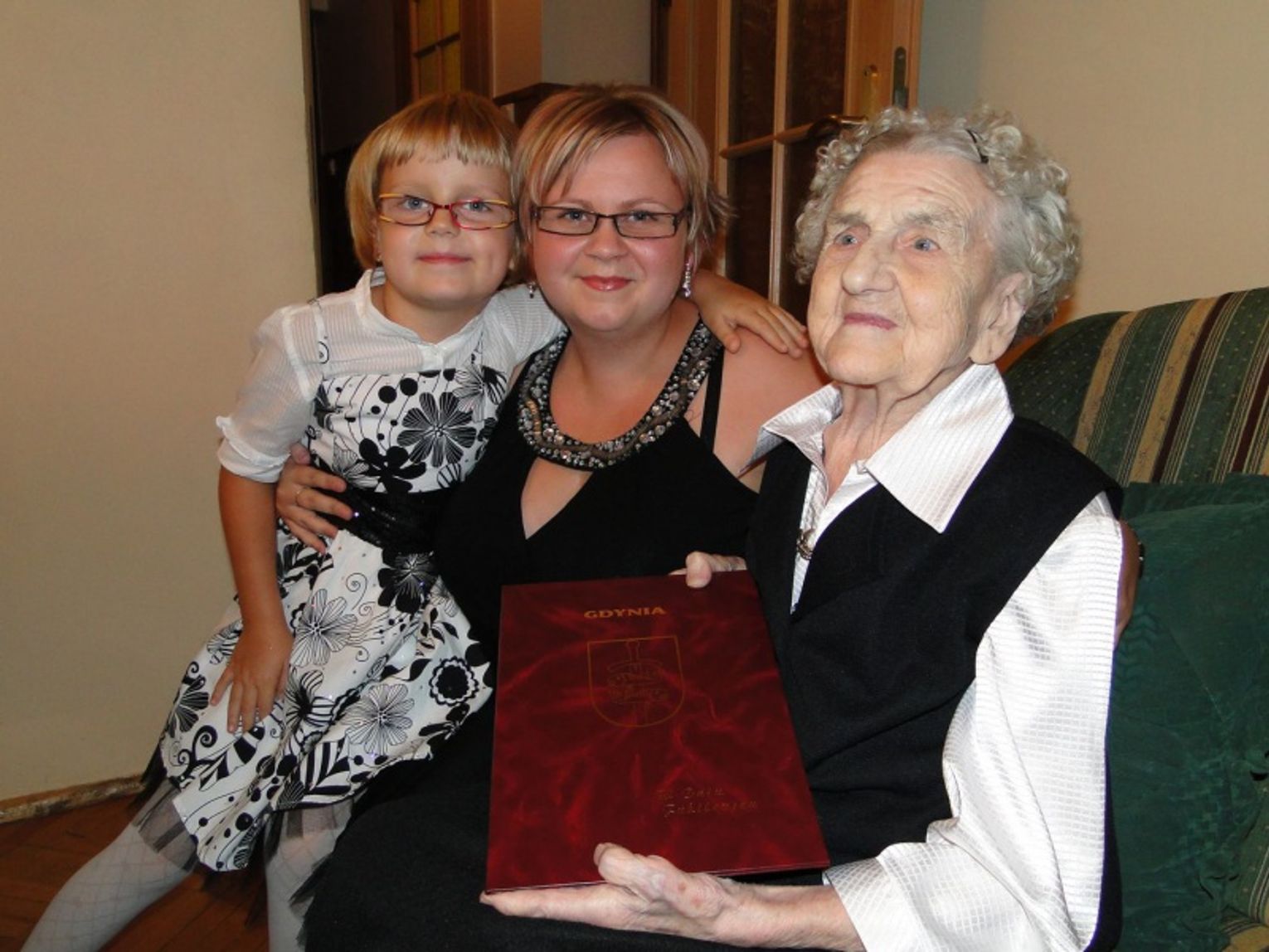 Obie jubilatki w prezencie od miasta otrzymały bukiet kwiatów, list gratulacyjny, cieplutką polarową bluzę i komplet ręczników, wszystko z logo Gdyni.