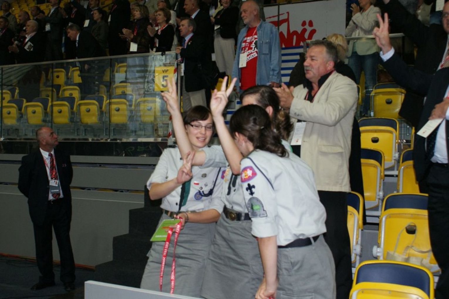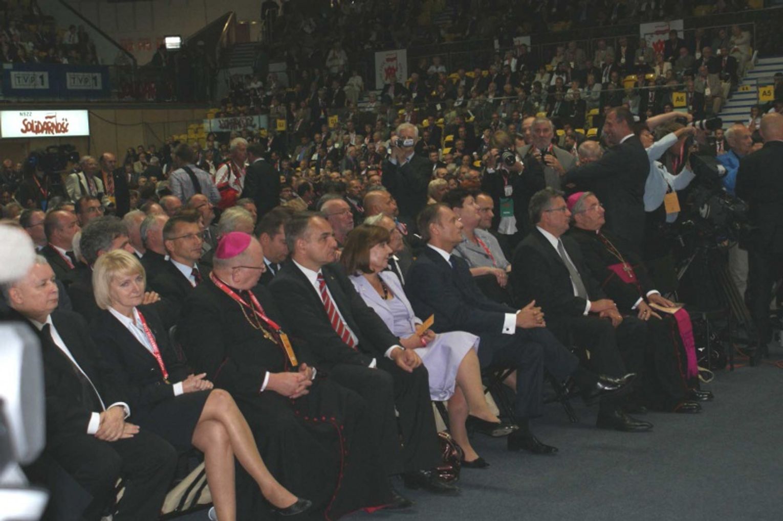 Gwizdy i okrzyki rozległy się, gdy przewodniczący "Solidarności" Janusz Śniadek powitał premiera. Oklaskami przyjęto przybycie na uroczystości lidera PiS. Podczas przemówienia premiera Tuska związkowcy kilkakrotnie gwizdali. Gdy prezydent i premier opuszczali obrady rozległo się buczenie. - Tu jest Polska - skandowali delegaci.