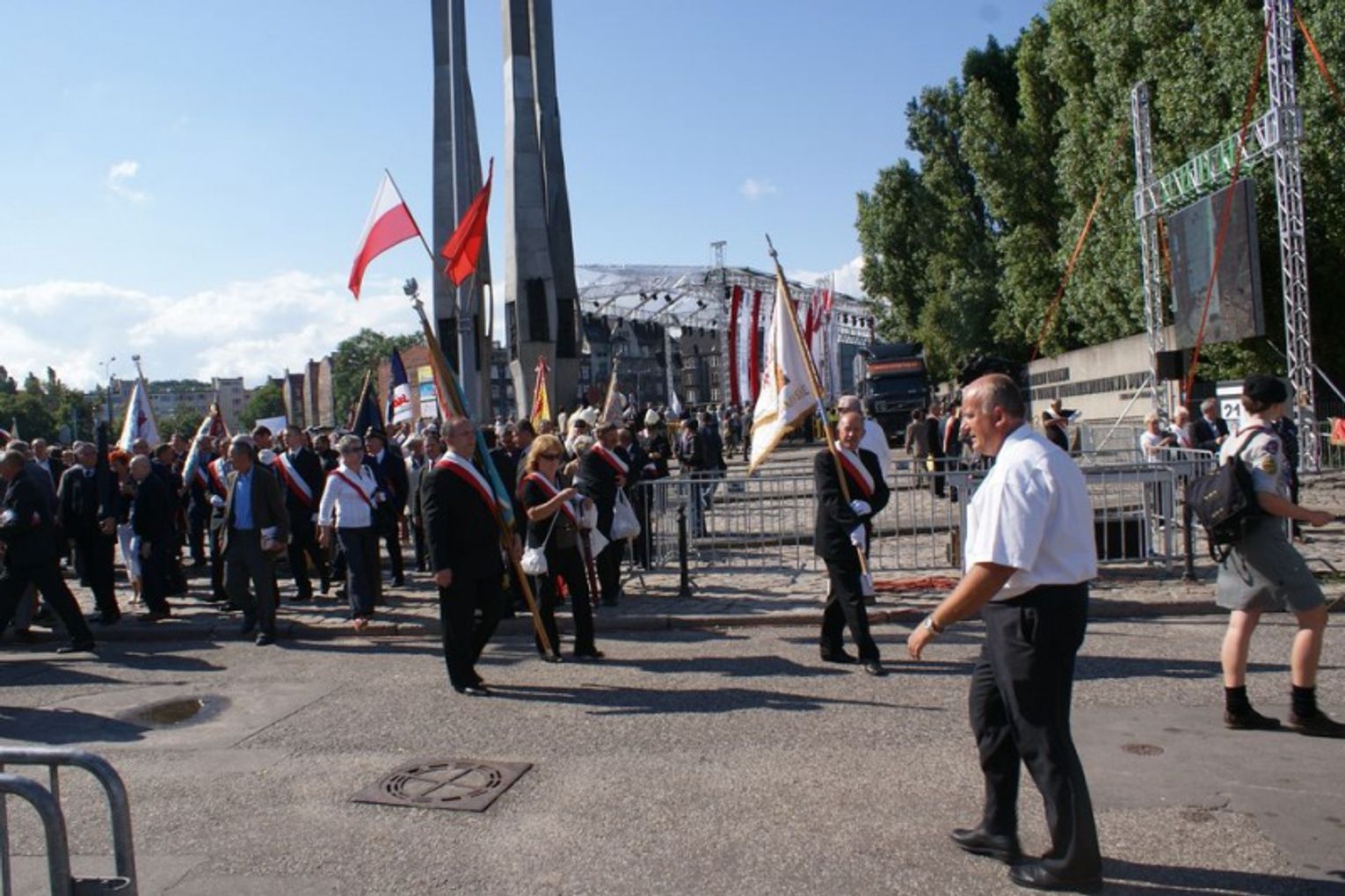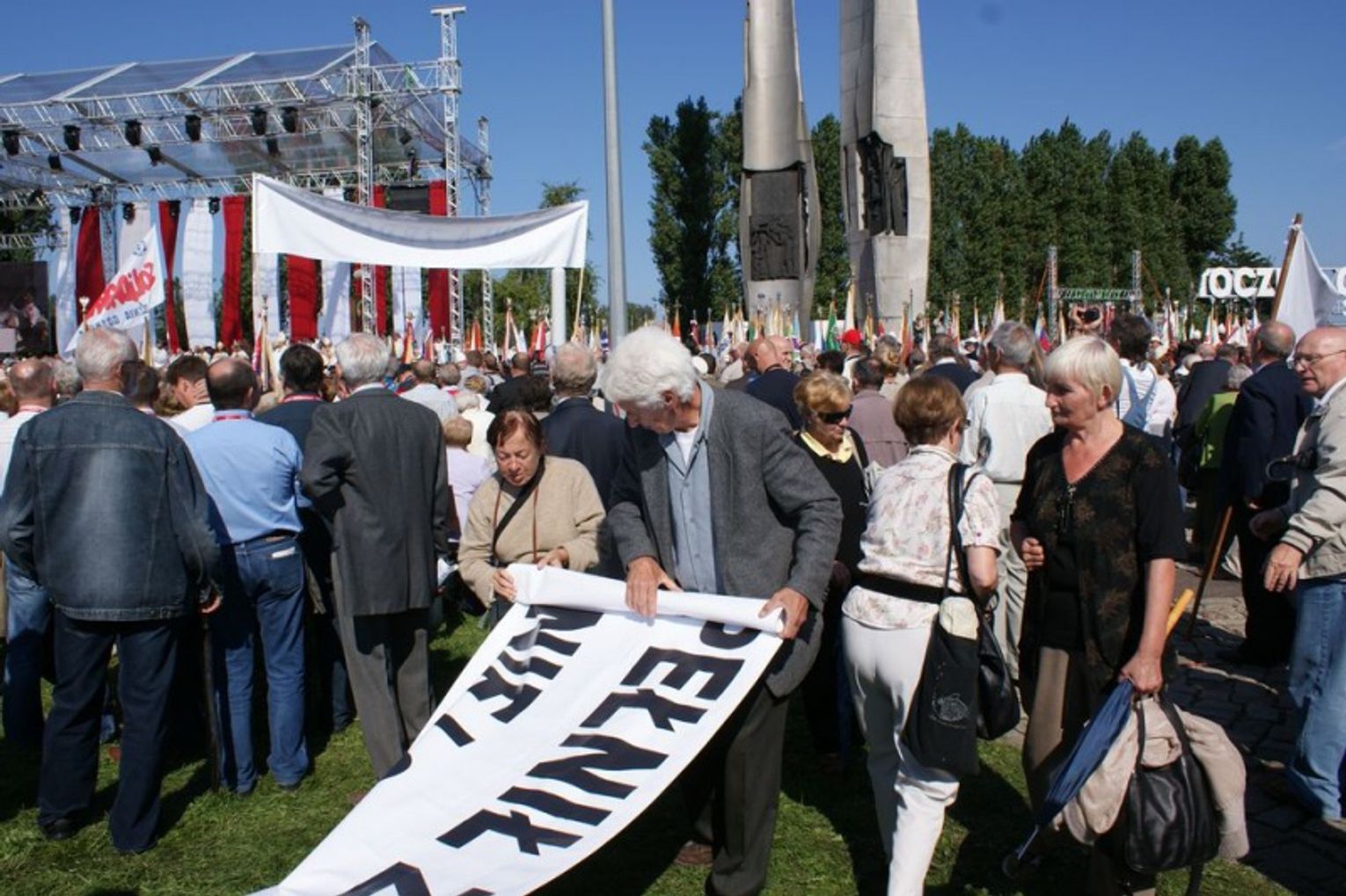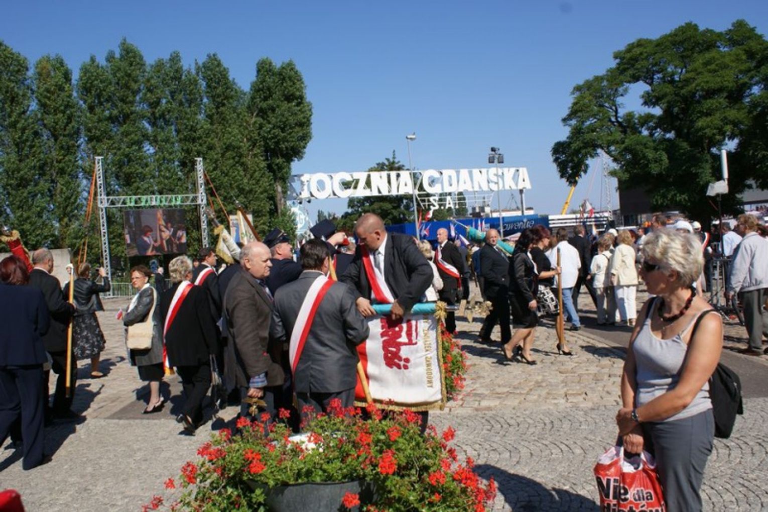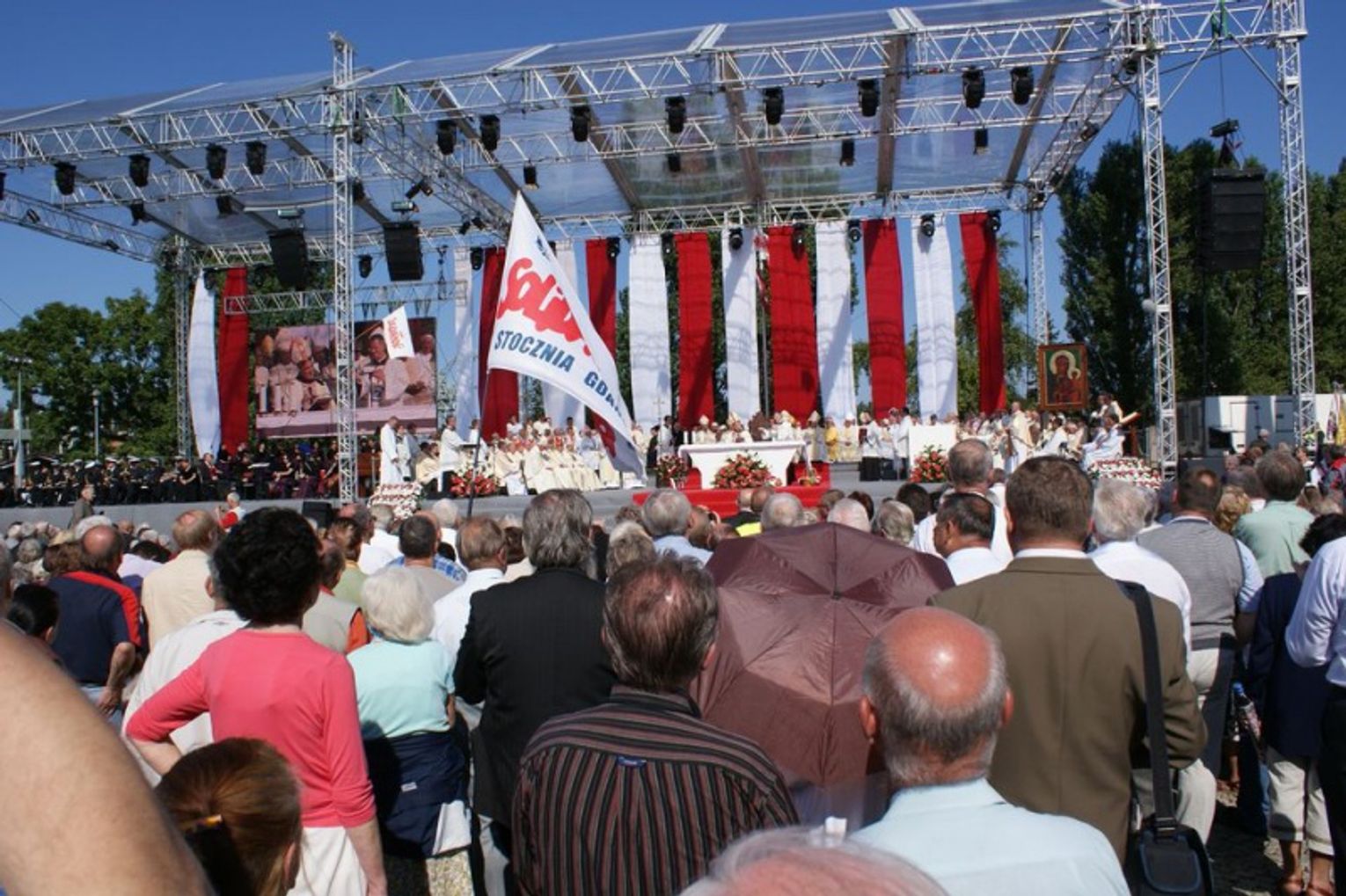 W trakcie mszy poświęcono także sztandary związkowe. Janusz Śniadek, przewodniczący NSZZ „Solidarność” wezwał także do odnowienia przysięgi związkowej, którą powtórzyli za nim zebrani członkowie „Solidarności”. (solidarnosc.gda.pl)