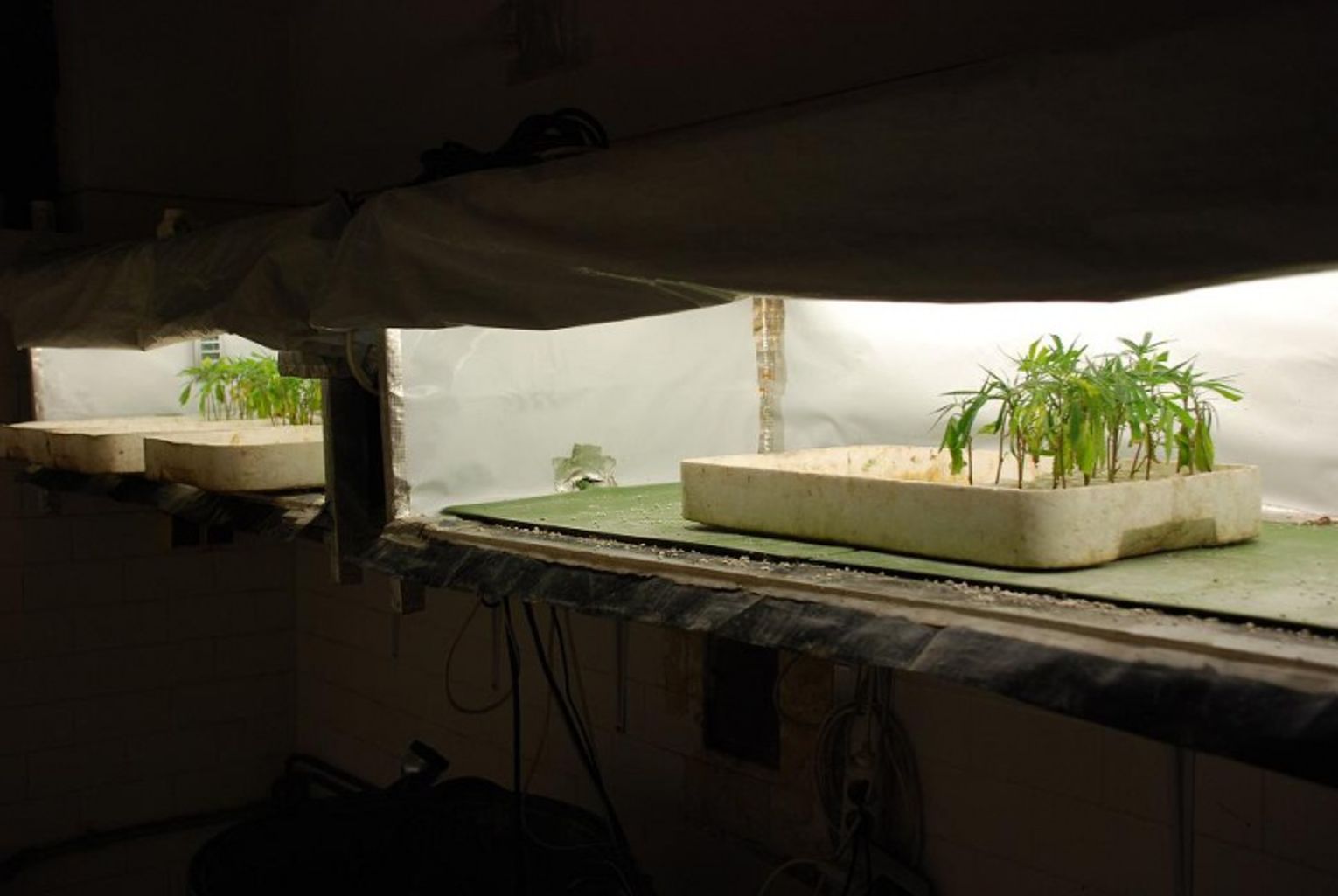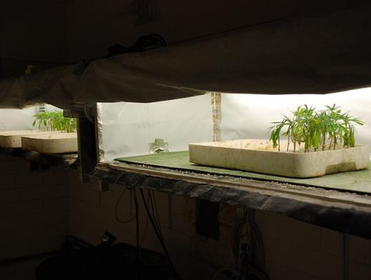 Niemal każde pomieszczenie tego czteropiętrowego domu przystosowane było do prowadzenia uprawy roślin konopi. W piwnicy zlokalizowano trzy pomieszczenia z naświetleniem i aparaturą utrzymującą wilgotność powietrza i stan gleby. Policjanci zabezpieczyli tam ponad 180 sadzonek konopi. Na parterze budynku znajdowało się kolejne podobnie wyposażone pomieszczenie, w którym było 10 blisko metrowych krzewów konopi. Na II piętrze budynku funkcjonariusze znaleźli podłoże przygotowane pod uprawę.