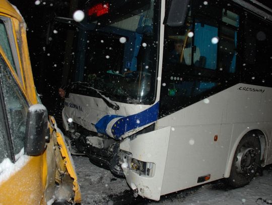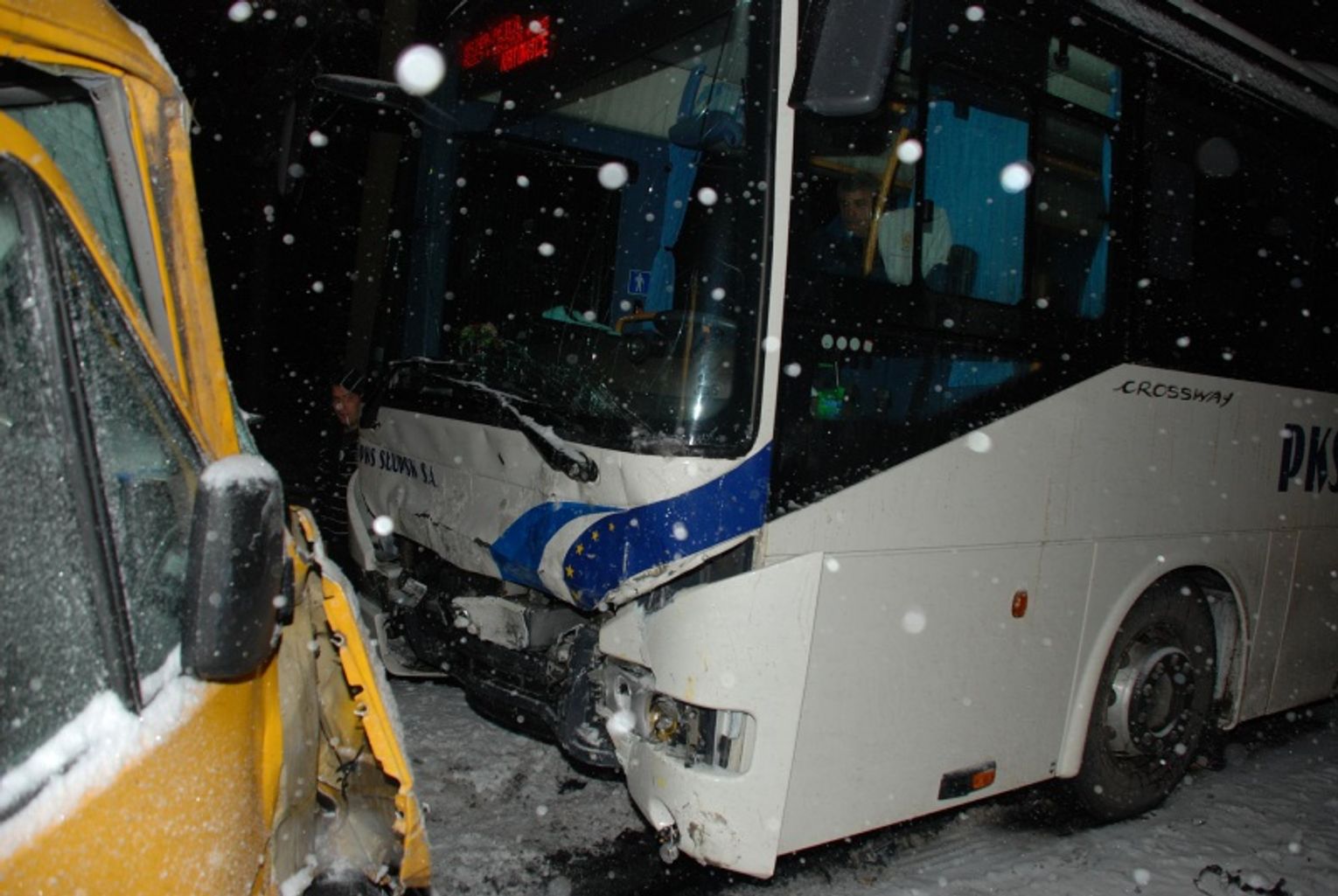 Wczoraj po godz. 21.00 dyżurny policji przyjął zgłoszenie o zdarzeniu drogowym na drodze krajowej nr 25, na odcinku Dobojewo - Stołczno. Doszło do zderzenia trzech aut. Policjanci zabezpieczyli miejsce zdarzenia. Funkcjonariusze ustalili, że kierujący renault scenic jechał w kierunku Człuchowa. Prawdopodobnie kierowca nie dostosował prędkości do warunków panujących na drodze, wpadł w poślizg, zjechał na przeciwległy pas ruchu i uderzył w prawidłowo jadącego volkswagena LT. Renualt wpadł do rowu, a volkswagen odbił się od renault i uderzył w autobus. W wyniku zdarzenia kierowca i pasażerka volkswagena zostali przewiezieni do szpitala. Kierowca renault i autobusu nie odnieśli żadnych obrażeń. Kierowcy wszystkich pojazdów byli trzeźwi.