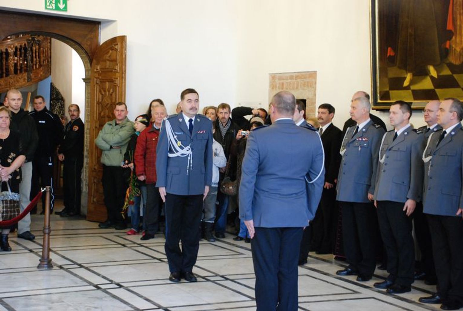 W trakcie uroczystości, z okazji 20-lecia służby, gen. Gajewski wręczył trzem policjantom symboliczne upominki.