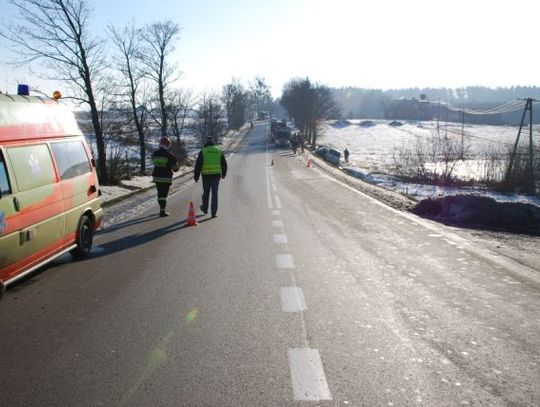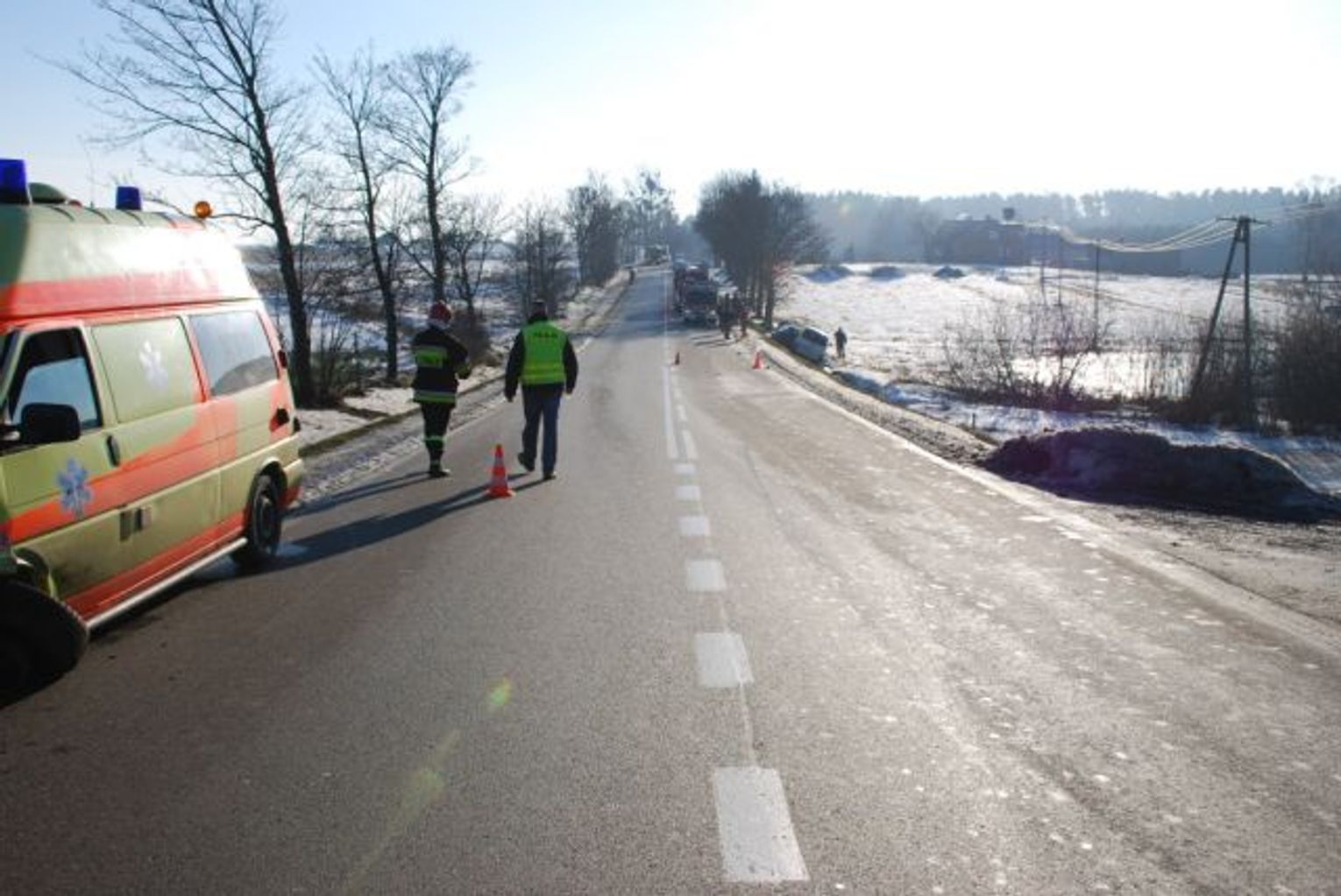 Oficer dyżurny sztumskiej jednostki około godziny 12.30 odebrał zgłoszenie o zderzeniu trzech pojazdów w miejscowości Koniecwałd, jednym z nich była karetka pogotowia. Policjanci przybyli na miejsce ustalili, że kierujący karetką 45 letni mieszkaniec Malborka najprawdopodobniej zagapił się i uderzył w jadącego z naprzeciwka forda. Dodatkowo kierujący volkswagenem 51-letni mieszkaniec powiatu tczewskiego aby nie uderzyć w karetkę zjechał na pobocze, wpadł w poślizg i uderzył w stojącego an poboczu forda. Kierujący fordem w wyniku zderzeń przez oba pojazd z urazem kręgosłupa został przewieziony do sztumskiego szpitala.