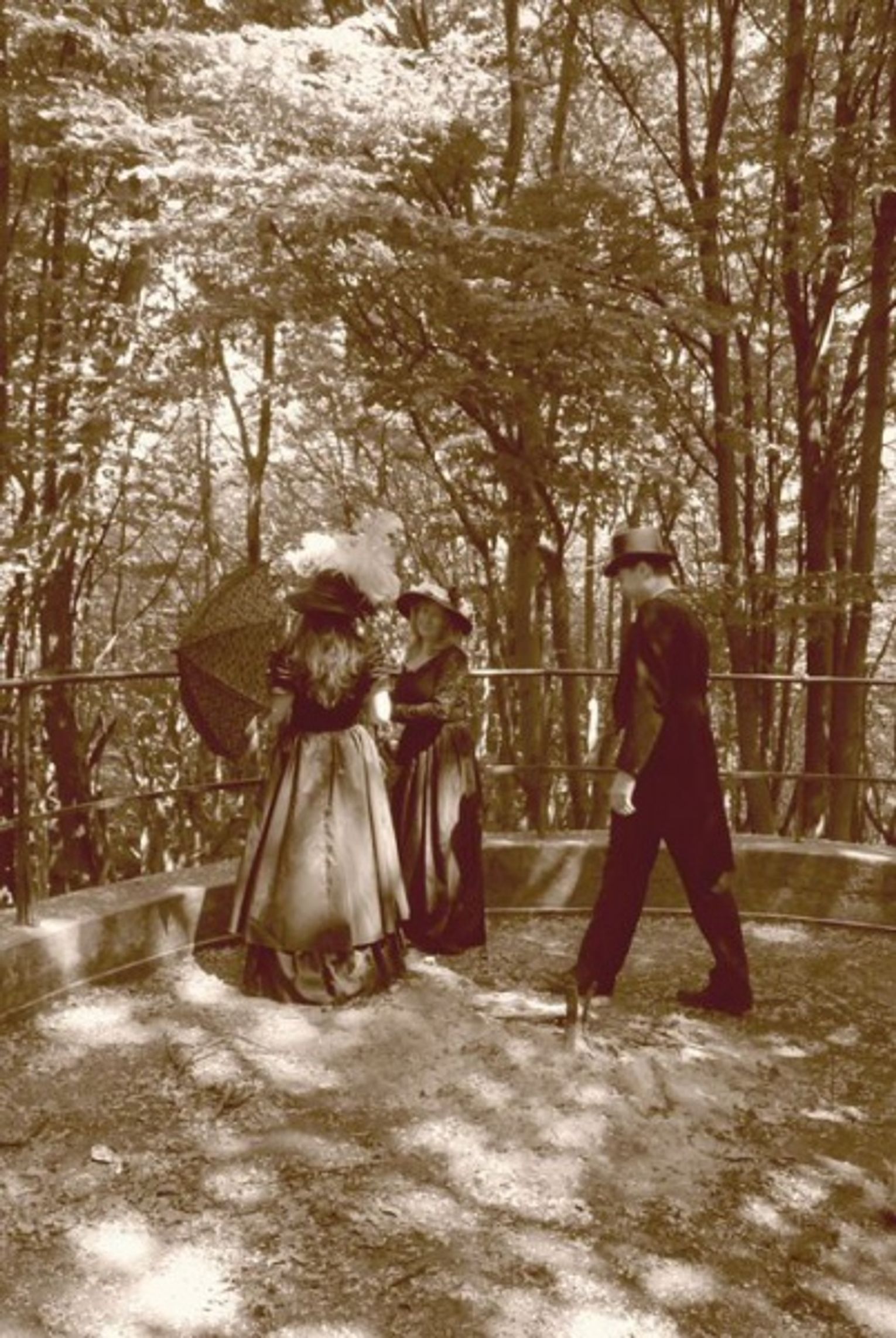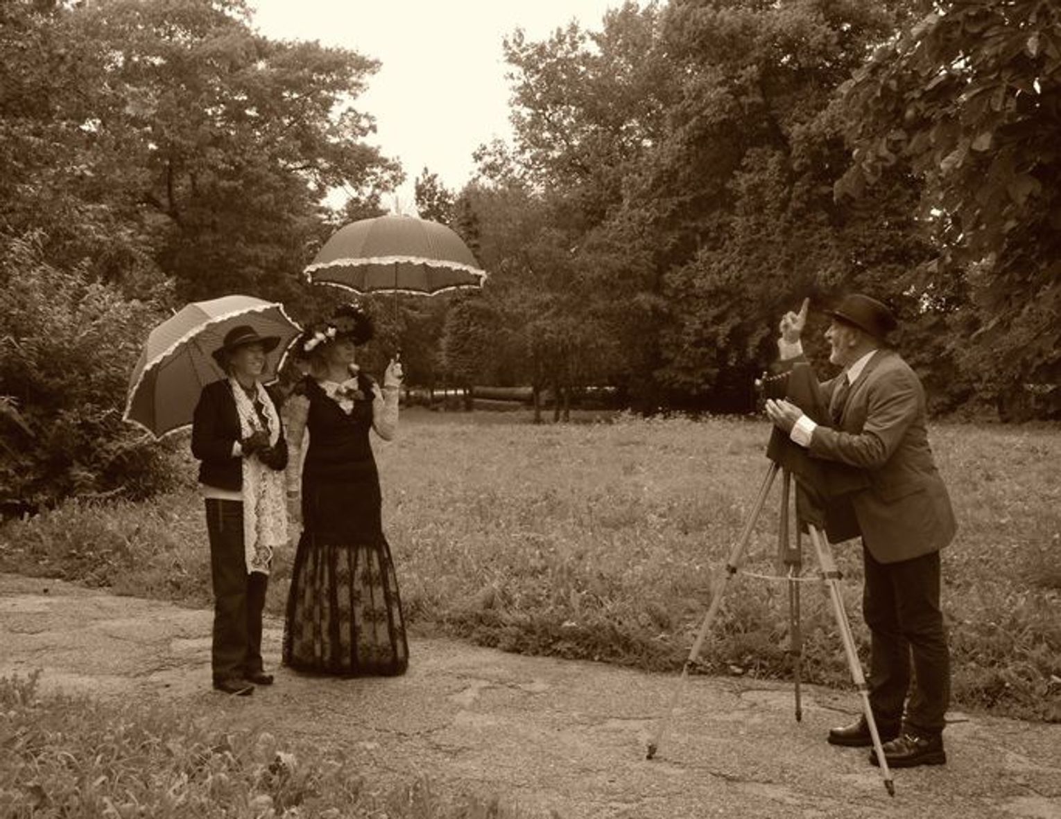 120 artystycznych zdjęć prezentuje założenia zielone dziś. Jest wśród nich 30 prac stylizowanych na stare fotografie. Spacerują w kadrach postacie odziane w kostiumy z minionej epoki – długie płaszcze, futerka z mufkami, kapelusze, krynoliny. Są wśród nich – trzeba się tylko dobrze wpatrzeć - twórcy wystawy. Dzieci trzymają w rękach drewniane koniki na patyku, latawce, lalki.