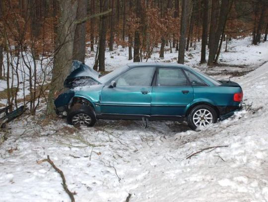 Po godz. 8.00 minioną sobotę dyżurny policji przyjął zgłoszenie o zdarzeniu drogowym na drodze krajowej nr 25 w Sporyszu w gminie Rzeczenica. Policjanci ustalili, że kierujący audi 80, prawdopodobnie nie zachował ostrożności. Zjechał na pobocze drogi i uderzył w drzewo. W wyniku zdarzenia jeden z pasażerów doznał obrażeń ciała i przebywa w szpitalu.