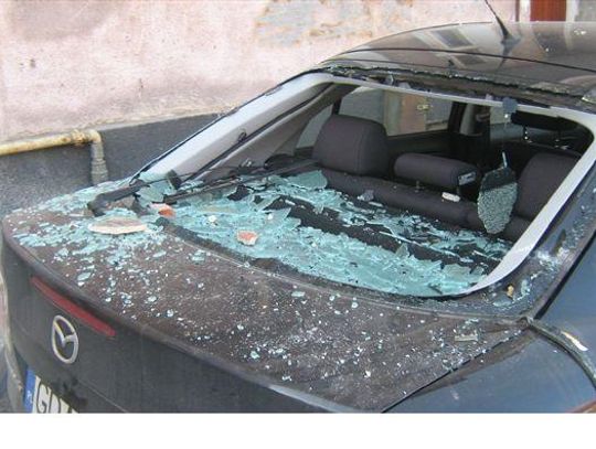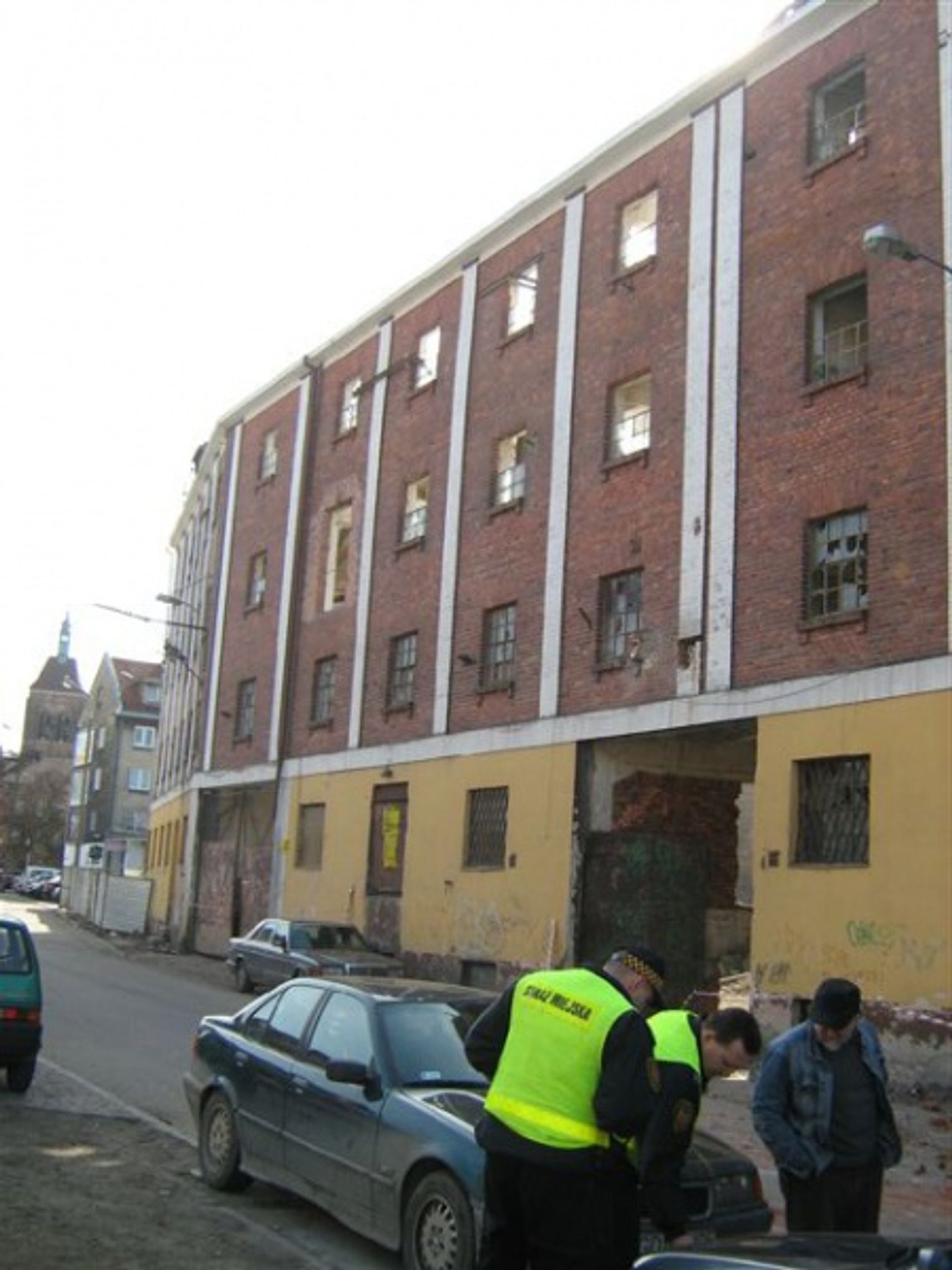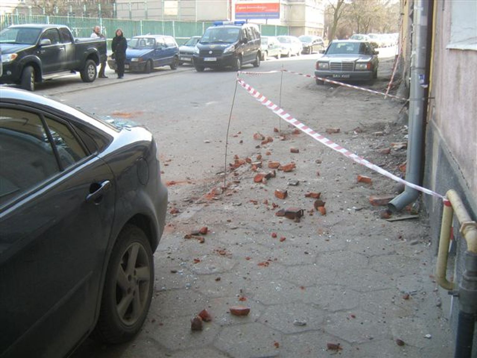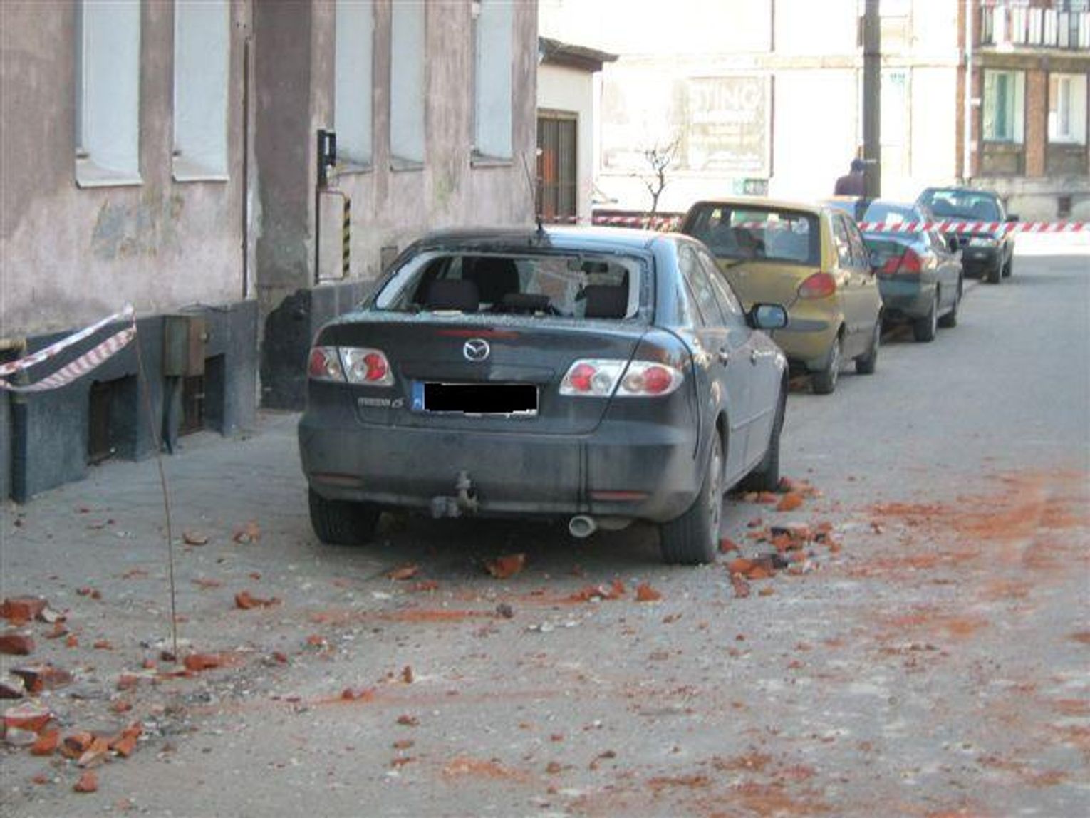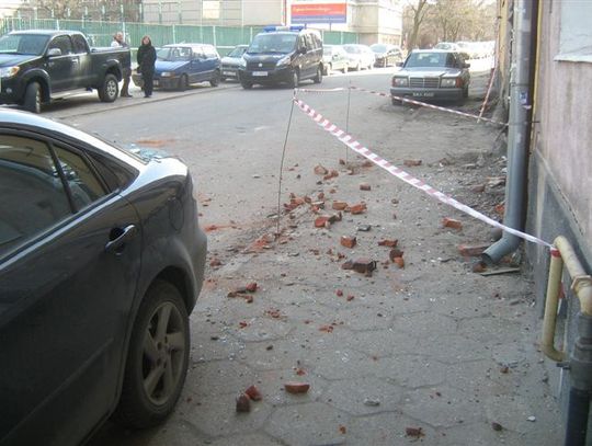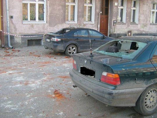 Spadające cegły z rozbiórki - na zaparkowane samochody