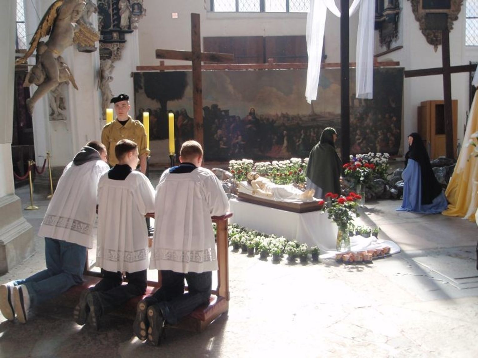 Wieczorem rozpoczęła się Liturgia Męki Pańskiej, po której złożono Sakrament do Grobu. Następnie, do późnych godzin nocnych, odbywało się czuwanie przy Grobie.